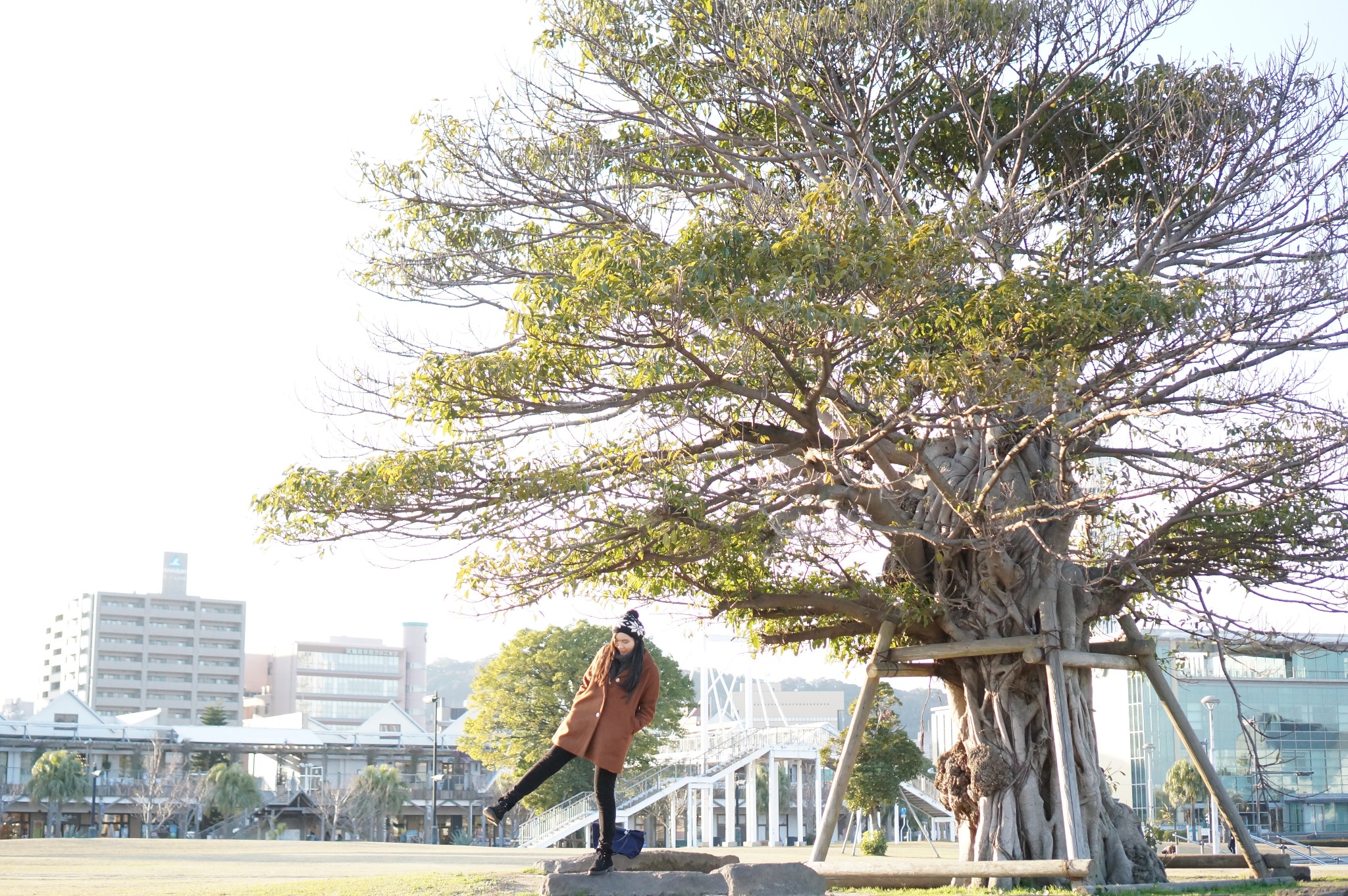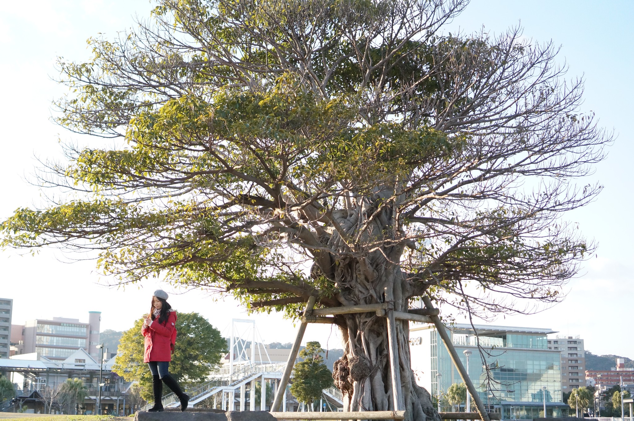 我们是一路跟着Google Map从dormy inn走到Dolphin Port的。2公里的路并不算远。一路安静、晴冷,倒也舒服。鹿儿岛街边树木的形状特别好看,叶子还是这样金黄的。正因为这些,完全不见冬天的萧瑟。