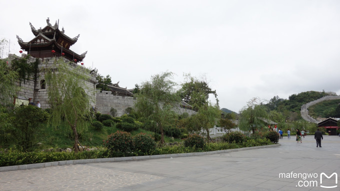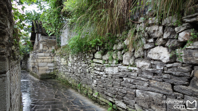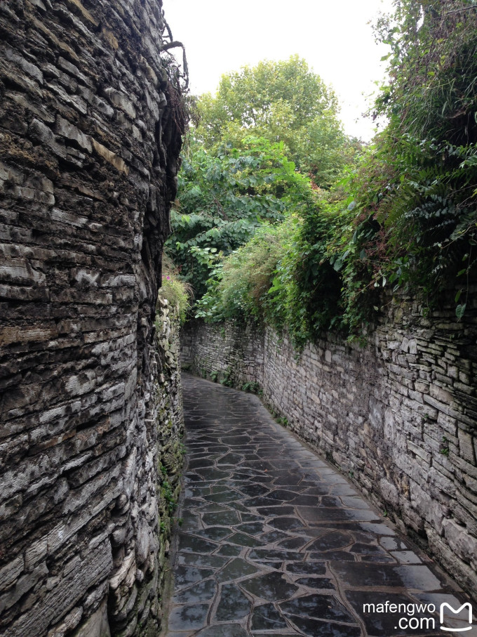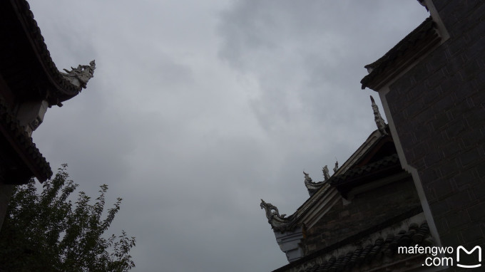 路上开始飘雨,13点整,终于到达青岩古镇。面前一条路往前走,右转会看到一个保安亭,10元把行李寄了,再往前走就看到了青岩古镇的售票亭。没有买套票,就买了10元的大门票。