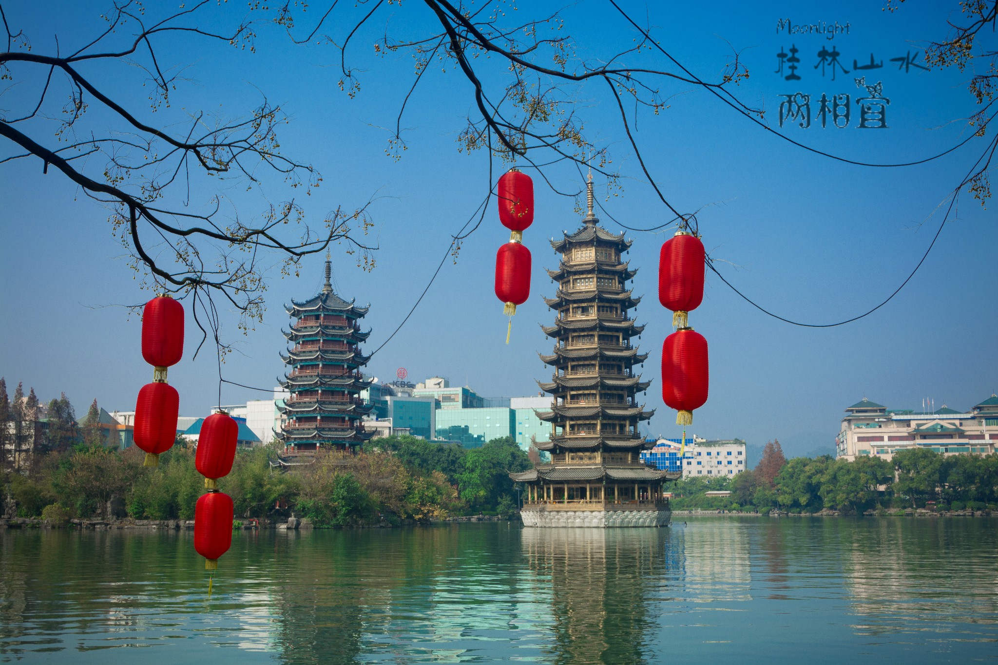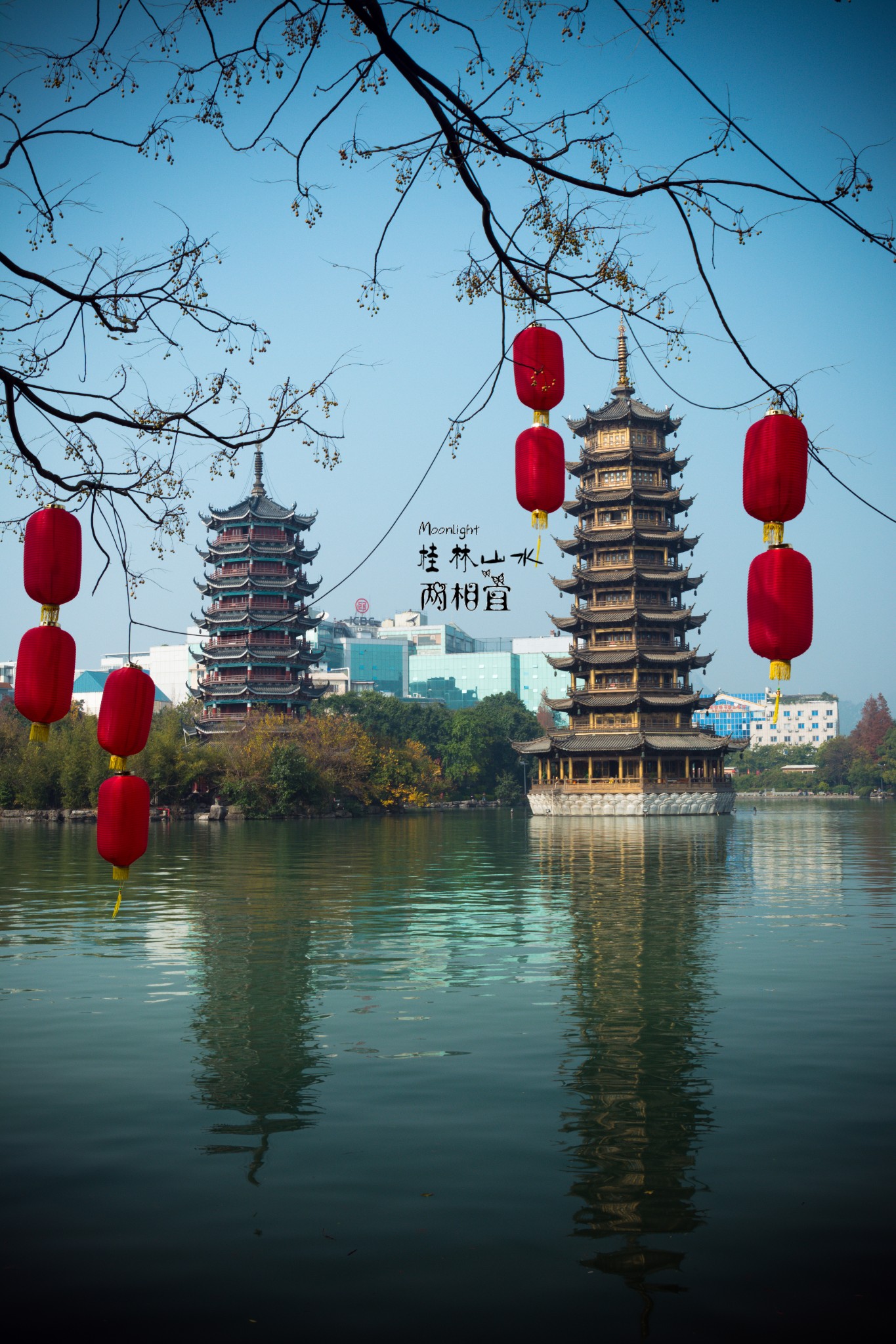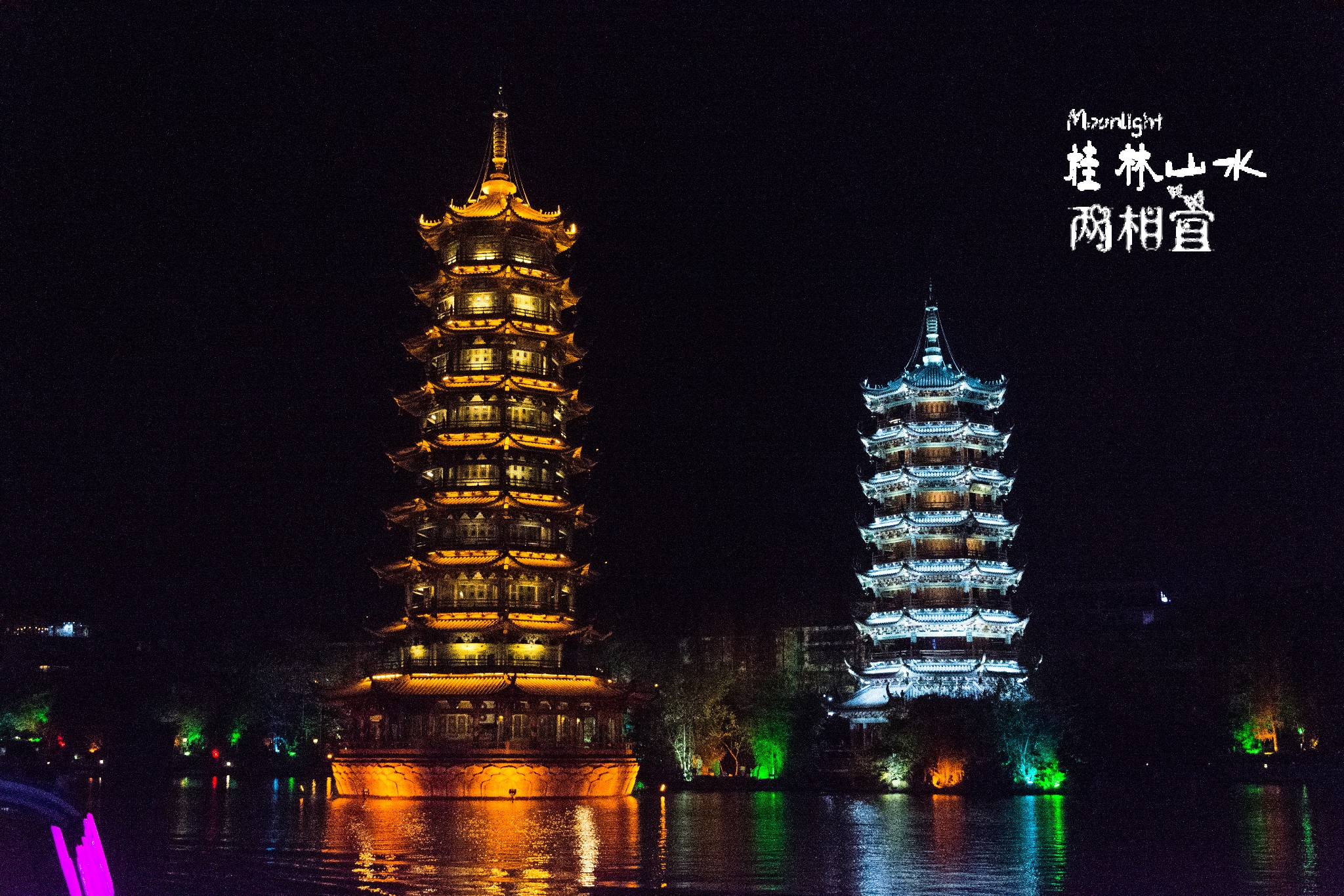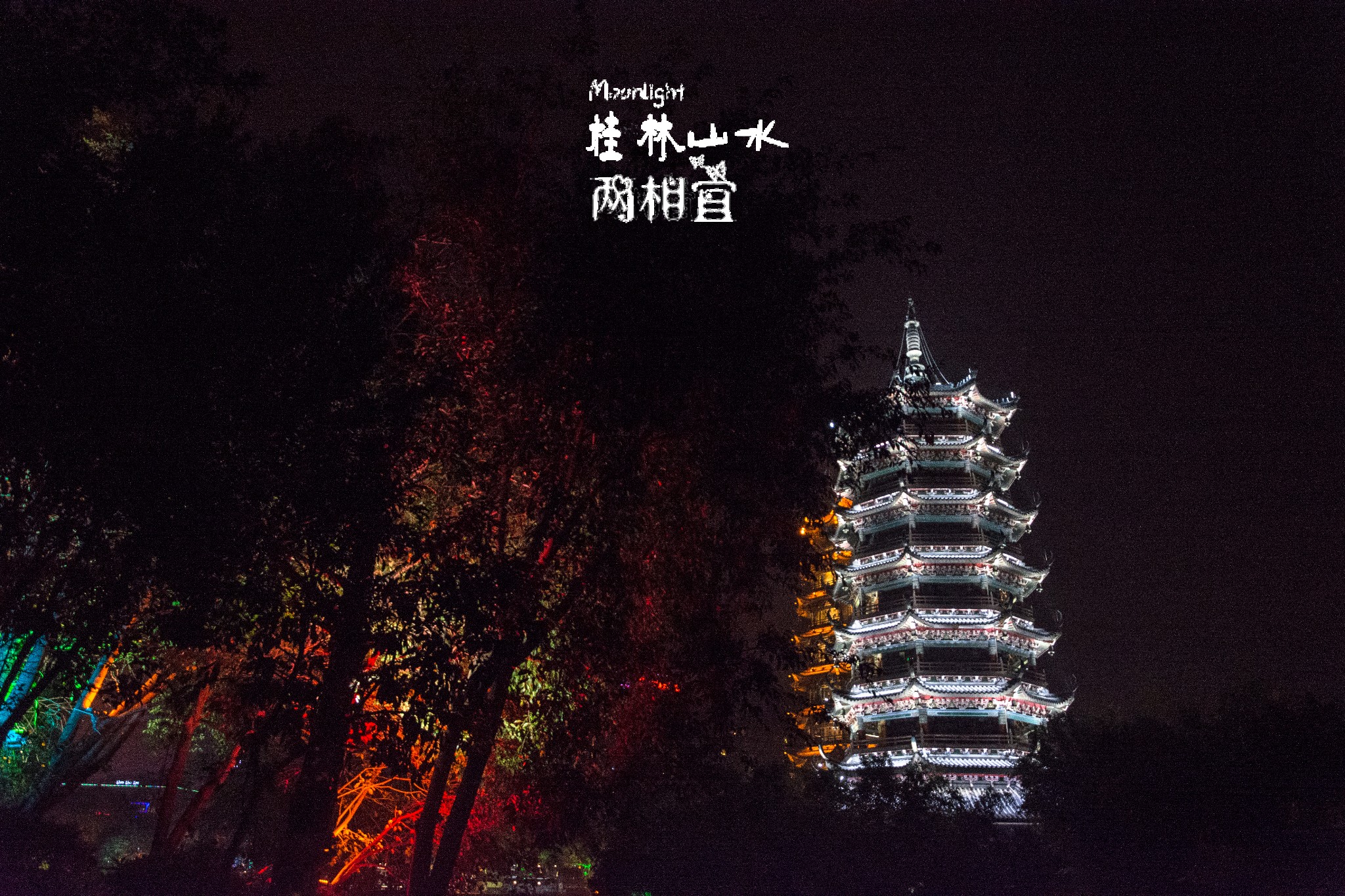 桂林其实不大,我们一查地图,发现从民航大厦走到酒店也不多远,便打消了打车的念头,穿过桃花江,再看看榕湖桂湖的夜色,以及那交相辉映的日月双塔,提前欣赏一下桂林的美景。