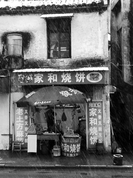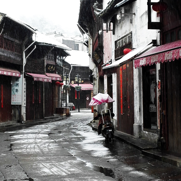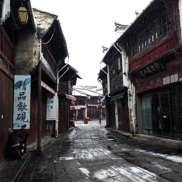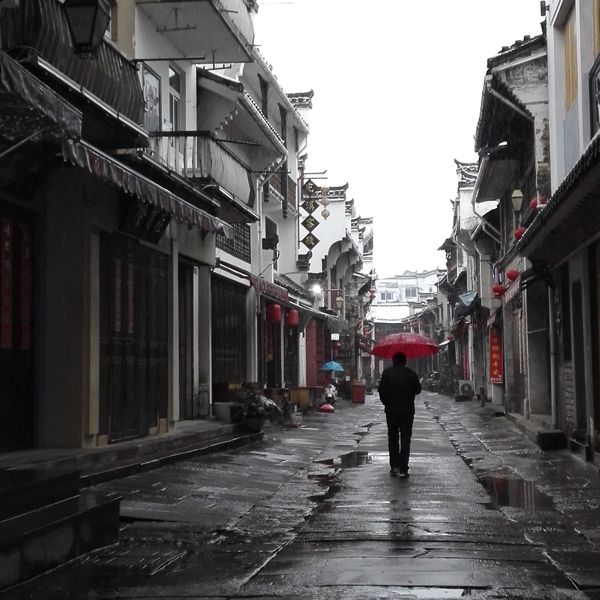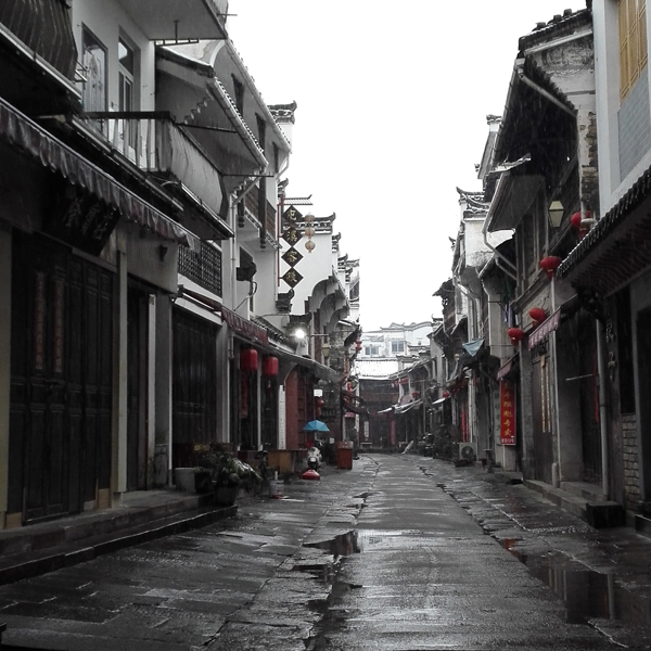 老街不长,呈鱼骨状,一条主街,两边延伸出数条街巷。典型的徽派建筑,高墙乌瓦。时间尚早,店铺都还没开门,街上也是空空荡荡的,正好拍照。