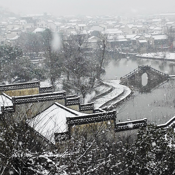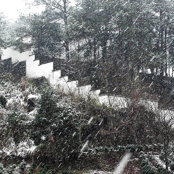 在外围转了一圈。雪中,山庄的围墙,若隐若现,很好看。只随手拍了几张。就奔下一个目标呈坎而去。