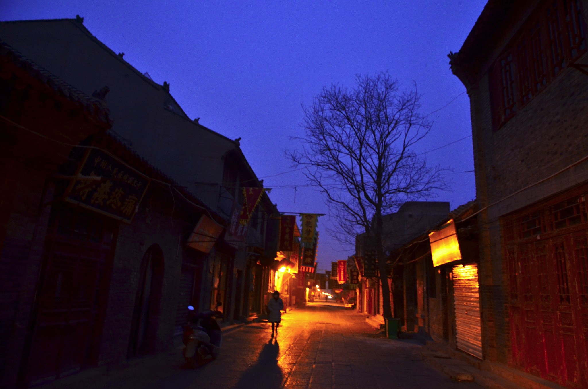 寂静的蓝,浸润着小街的晨梦。