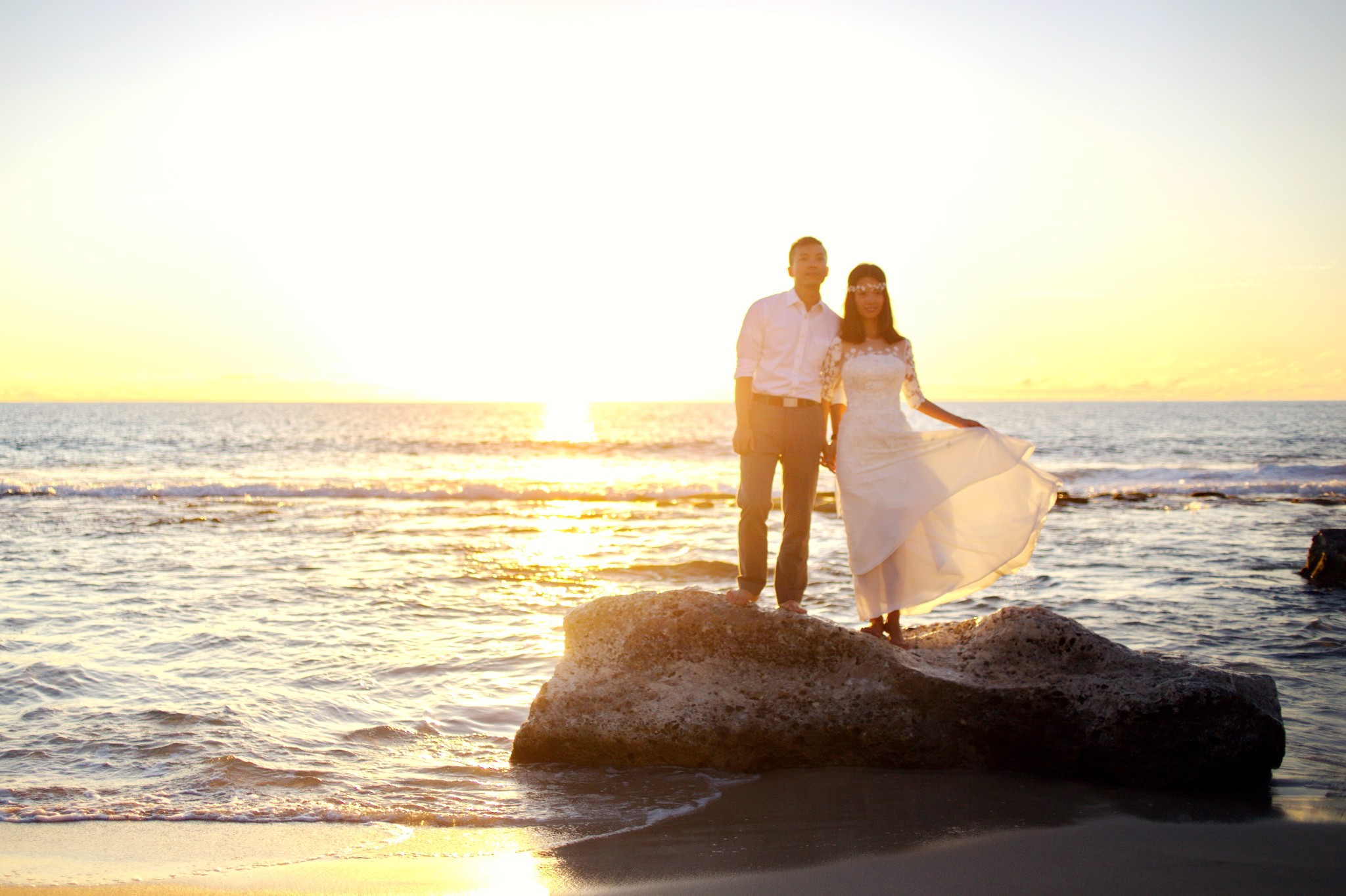 在Oahu岛西海岸边,Makua Beach大概是最美的一个了。我们要不是因为跟摄影师约好在这里拍婚纱,可能都不会找到这里。