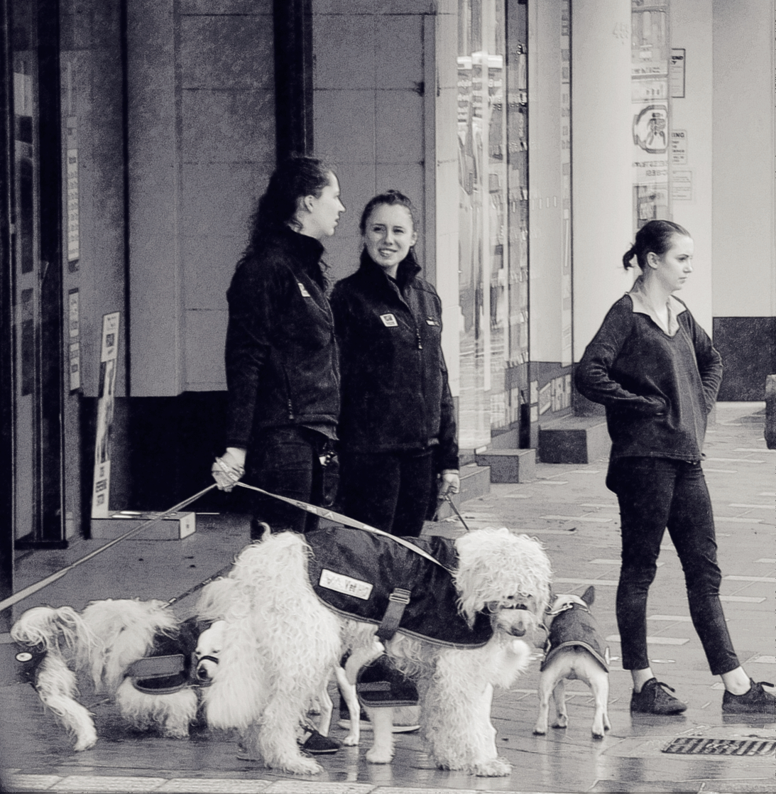 不过,路边的遛狗女郎看得很清楚。嘻嘻