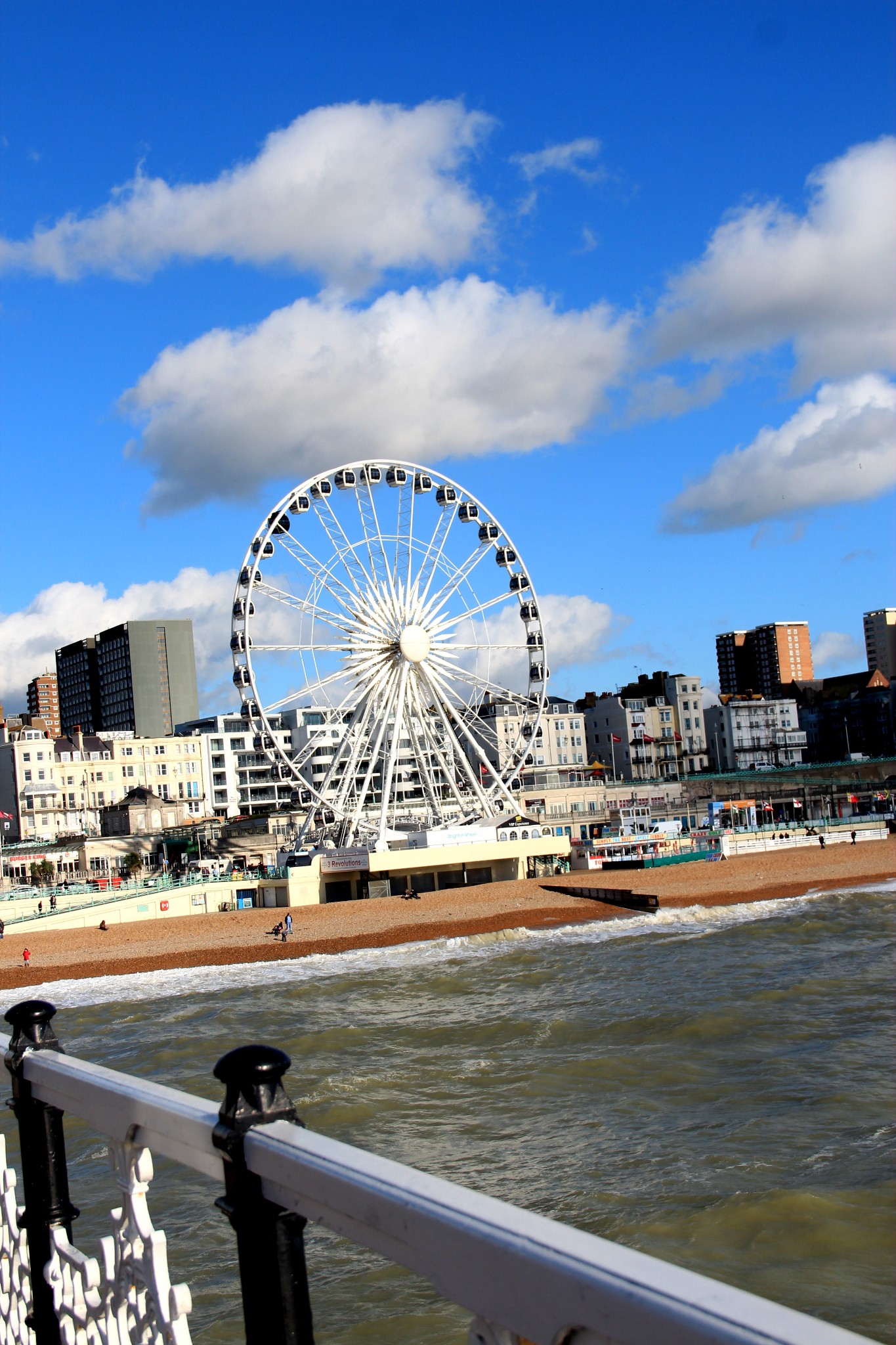 坐在栏杆边,看着蓝天白云,摩天轮在缓缓转动,海风轻轻地吹,阳光下的布莱顿如此美好,怪不得是度假胜地。