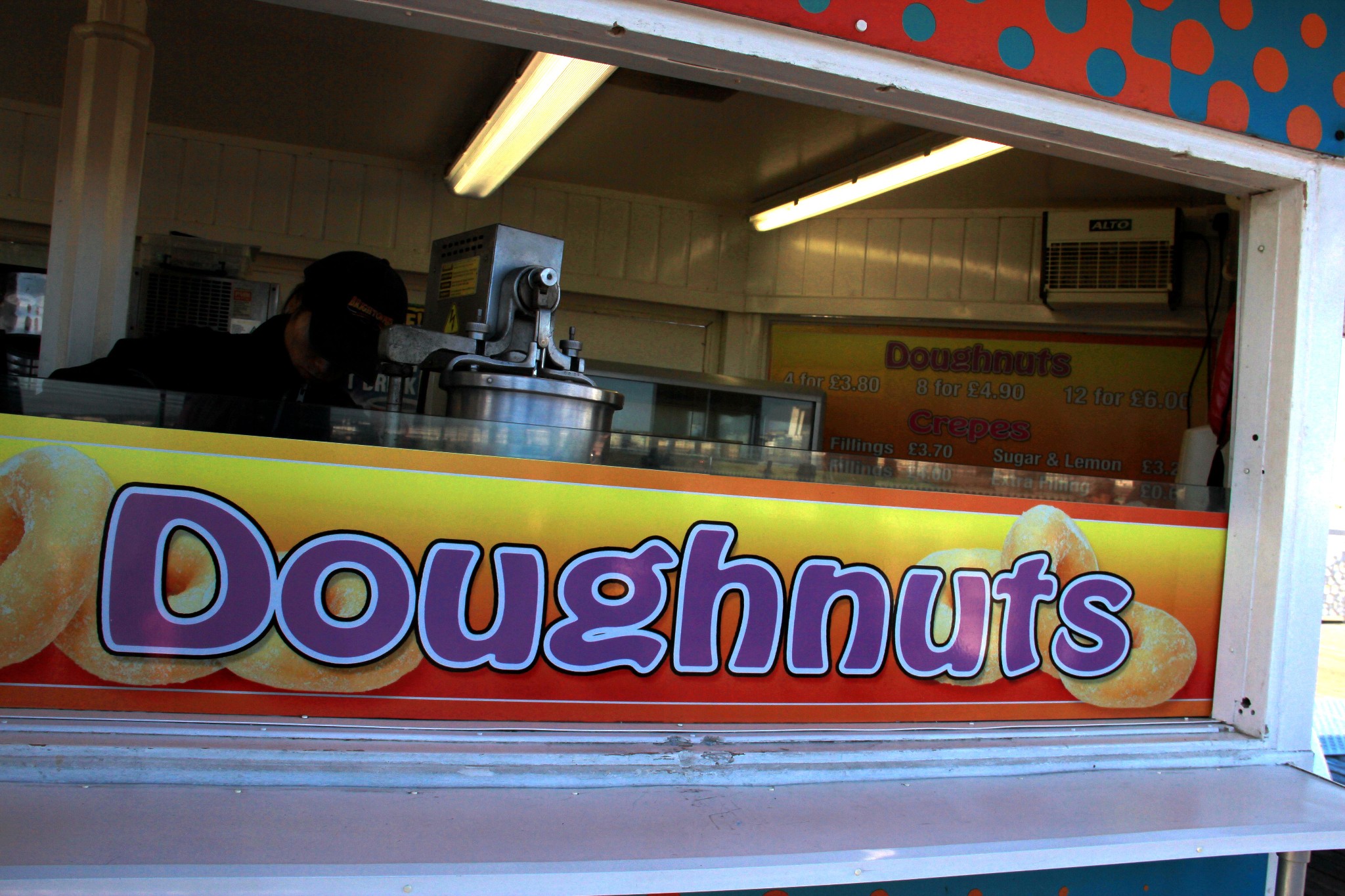 到了布莱顿码头,一定不能错过的美食就是doughnuts,也就是我们熟知的甜甜圈。走在码头上,空气中都有一股甜蜜的味道,卖甜甜圈的摊位前总是排着长长的队伍。