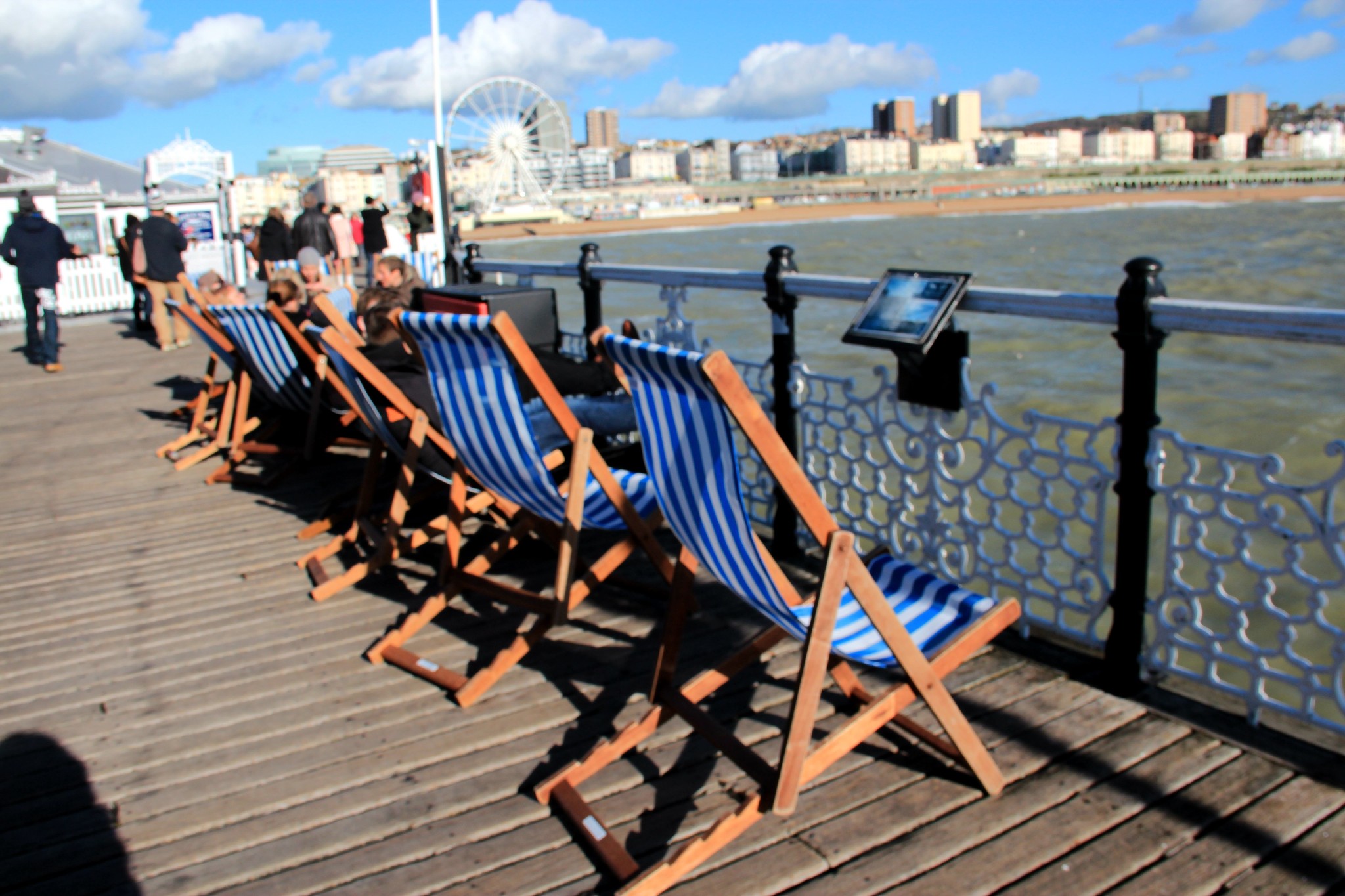 布莱顿码头的配套设施做的还不错,栏杆边还特意摆放了躺椅,供游客在此小憩。
