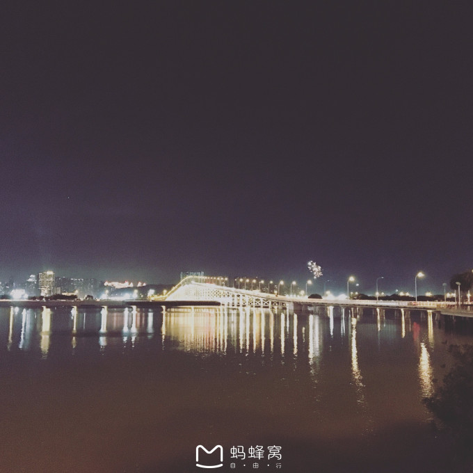 晚上在永利门口看到大桥另一端的烟火,这时候还没正式的开始放,夜里12点左右放的多。