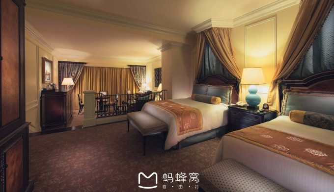 威尼斯人在路氹,价钱真的不贵,平日里也就一千块一间房的样子,大年三十价格也不贵,一千五的就可以住贝丽套房了,从大年初一开始涨价。澳门挨着珠海,威尼斯人西门门口竟然就直接有去各个口岸的大巴,陆客拎着大包小包前来,check in都要排好长的队。作为一个度假村,这里除了没有沙滩之外都很全面了,有商场有餐厅,该有的都有而且面积很大。