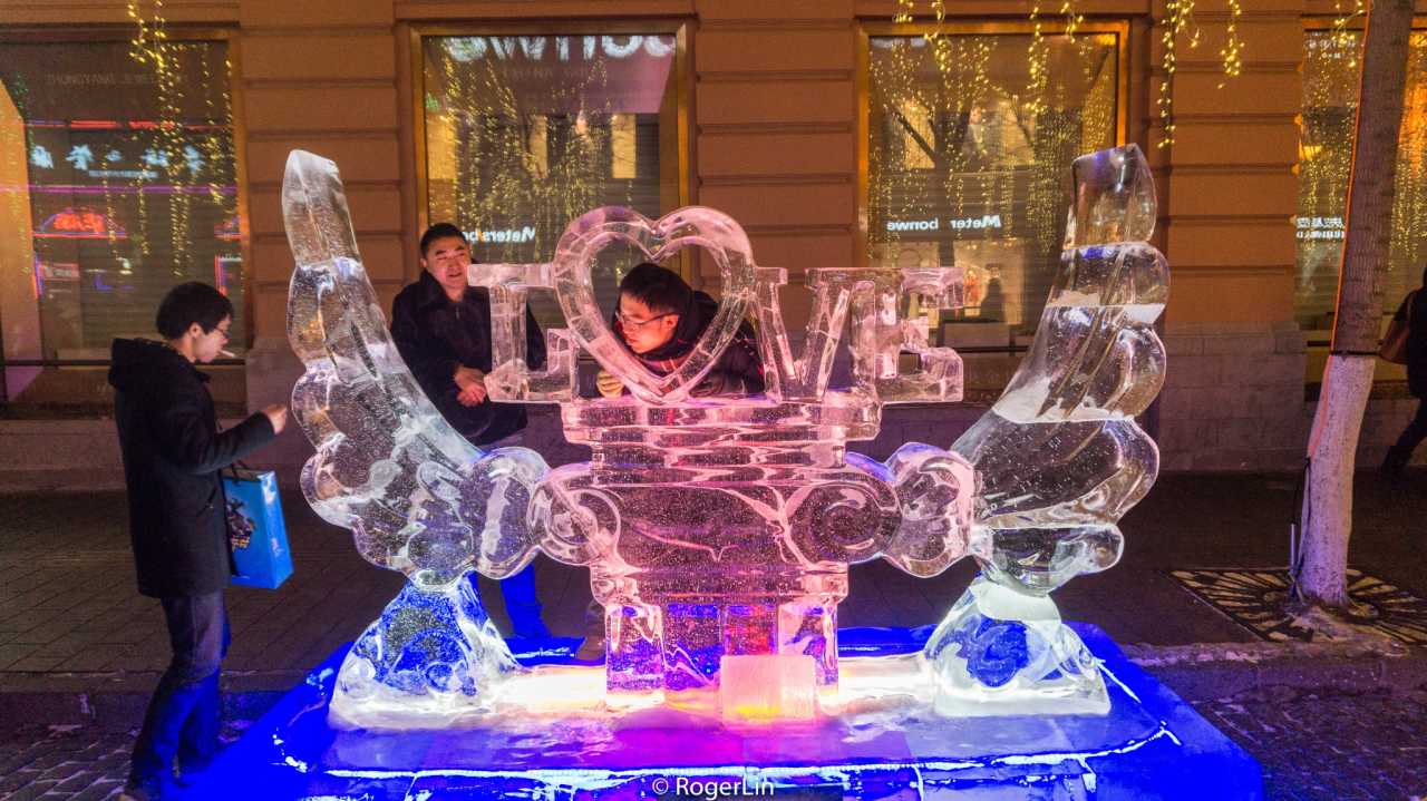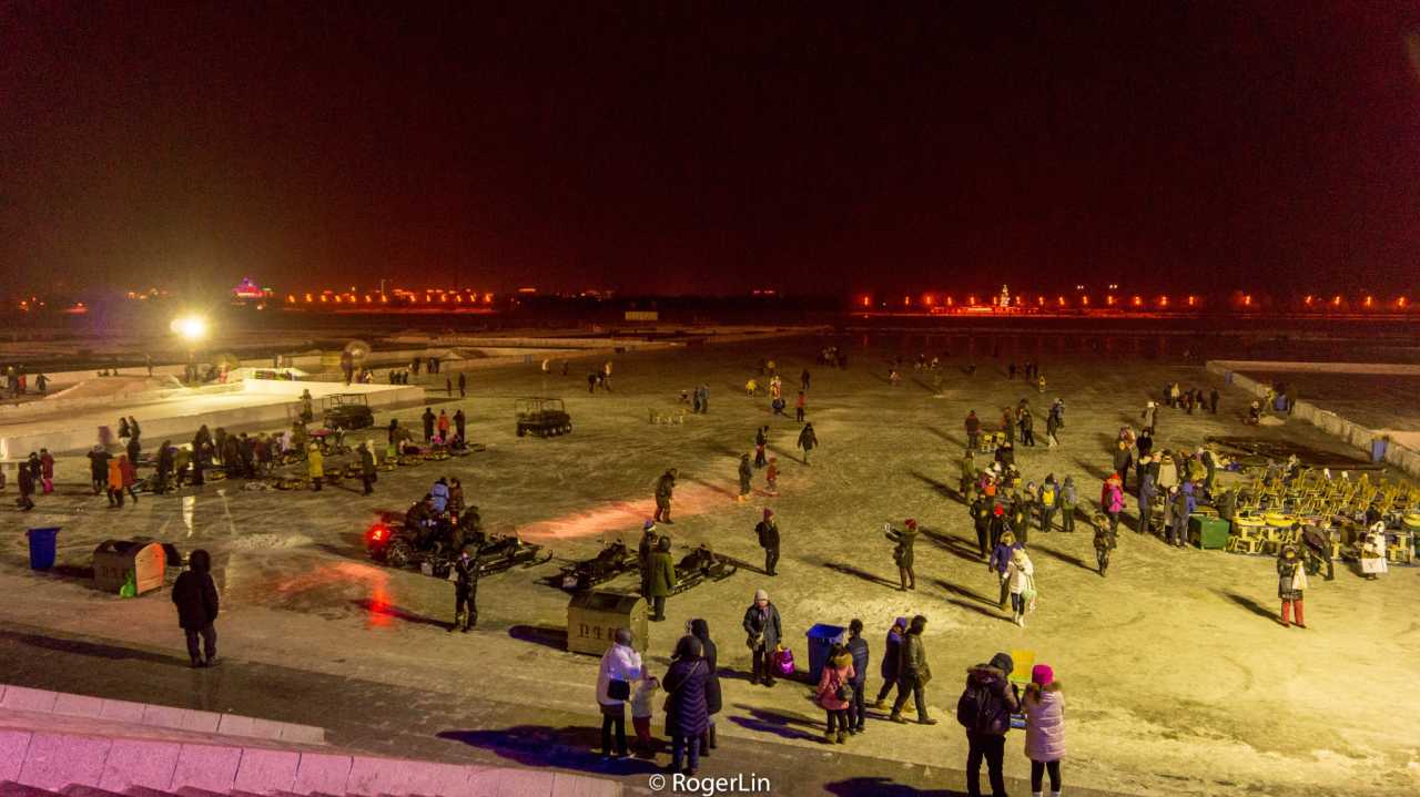 顺着中央大街一直走,就能走到松花江边的防洪纪念塔,旁边是斯大林公园。我们到松花江上玩了好一会,坐了小车拉着的冰上漂移,很有趣。