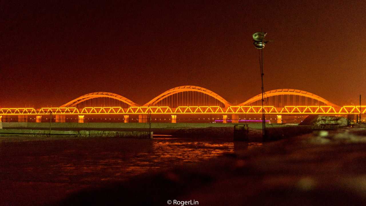 在松花江上很容易看到不远处的滨州铁路大桥。