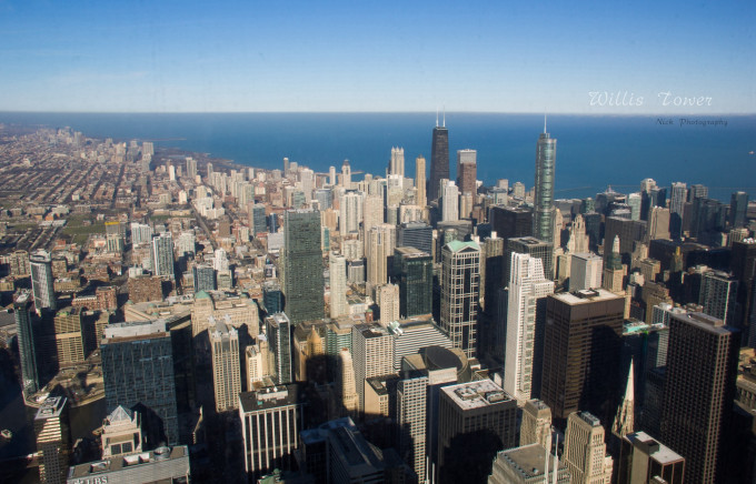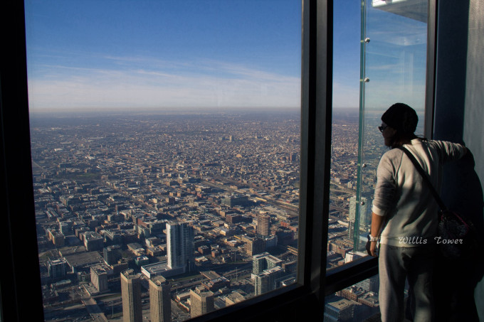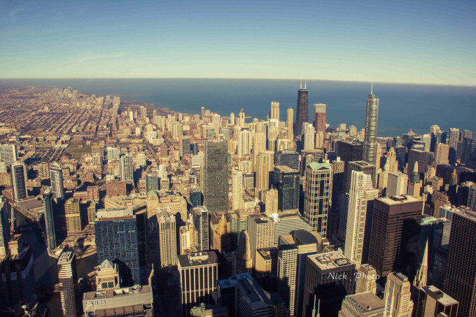 Willis Tower,大多数人还是叫他以前的名字-西尔斯大厦,曾经的世界最高的大楼。从110层400多米的高空俯瞰整个城区,想想都想轻生