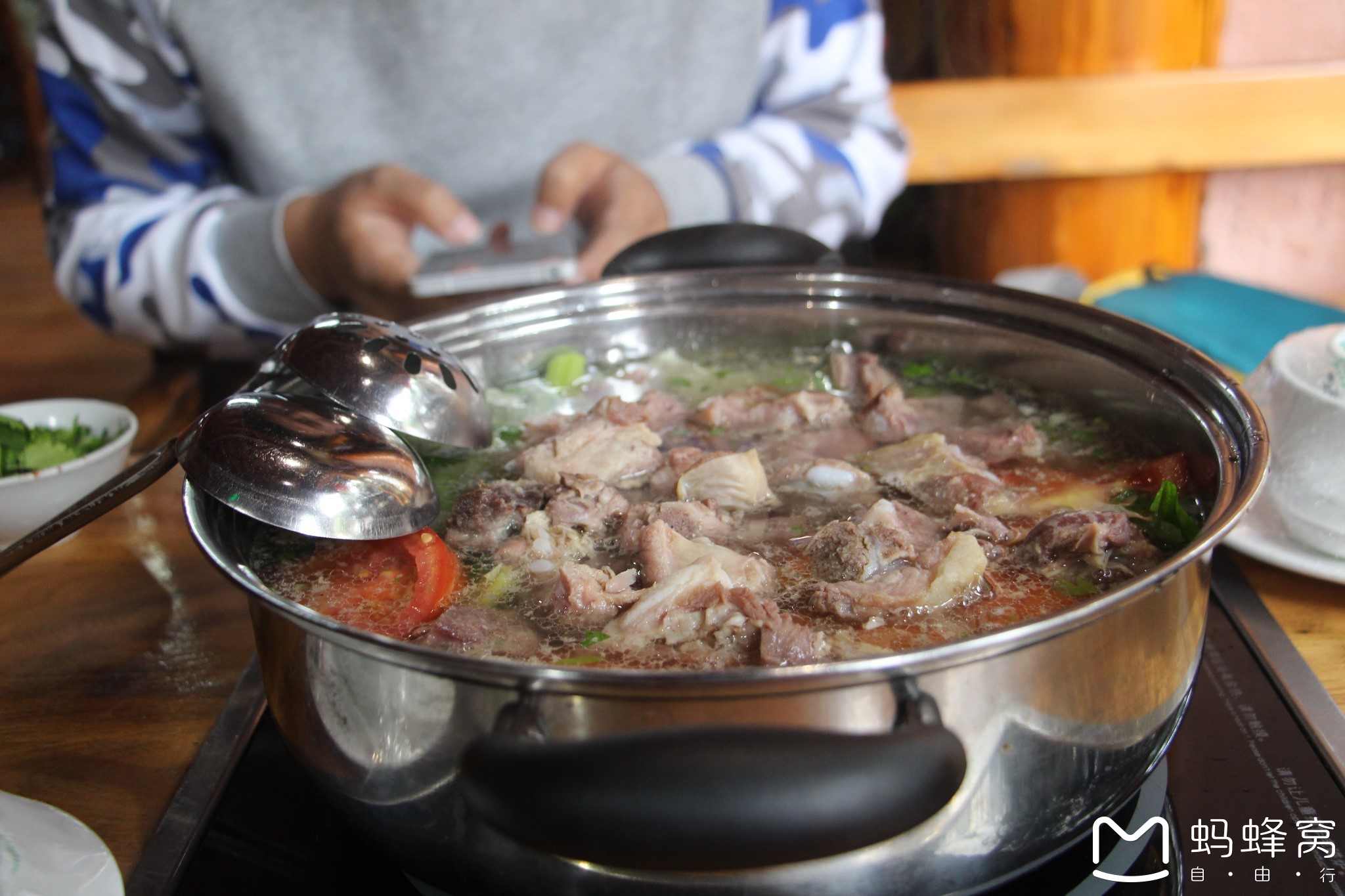 传说中的腊排骨火锅,这是第一次吃,讨厌里面的大芹菜,排骨的口感就跟家里面的清水煮排骨一样。没什么特别,108元,他家最便宜的锅,真的不值。(古城外有很多小店,价格便宜,味道也差不多)