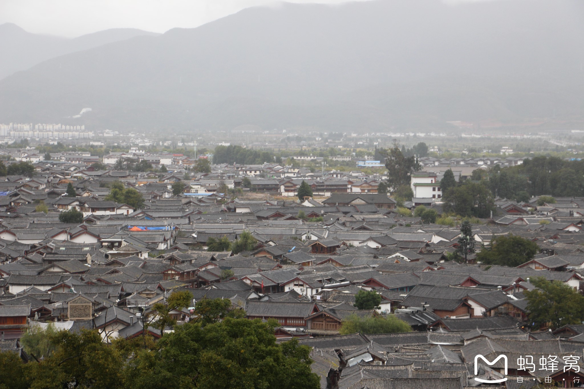 在客栈里呆的好无聊,下午4点多又跟姜先生跑了出来,雨依旧在下,好冷好冷。到木府和狮山公园小转了一下,木府进去要古城维护费(我们没买),所以就在门口看了一眼,在狮山附近的观景台(收费2元/人)拍了张古城照片。雨中的古城,灰灰的,不好看,好期待晴天。