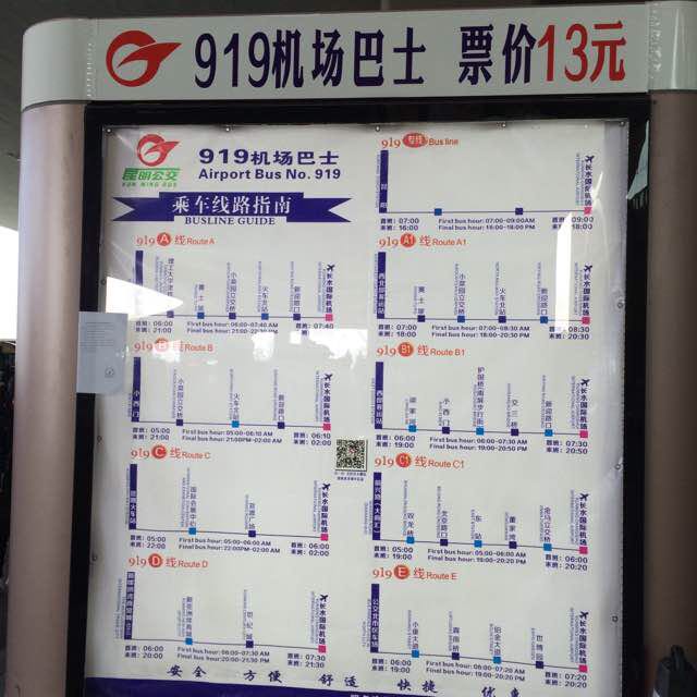 PS:昆明的机场大巴分两种:便宜的(919A或B或C或D)……13元 and贵的(空港X号)……25元……