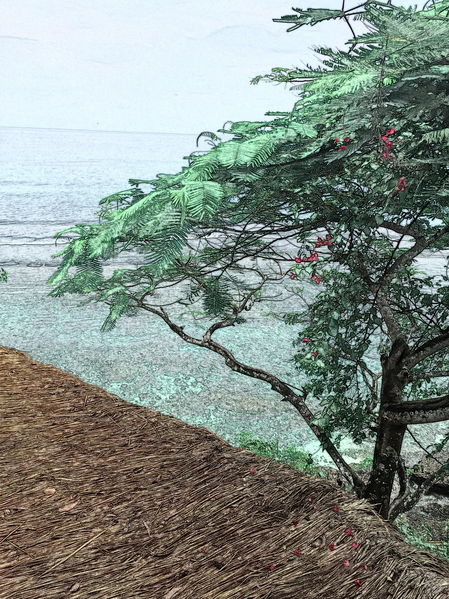 凤凰木、茅草屋、落花与印度洋
