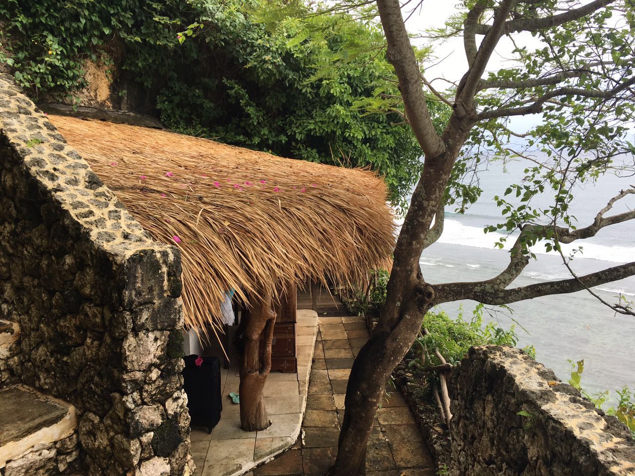我们定的客房叫做CLIFF,悬崖的意思,房如其名,看到的时候我整个人都不好了,推开一扇还没有一米高的小木门,走下一段台阶,在台阶上已经可以看到印度洋,台阶的尽头左转就是我们的客房,一张大大的双人床对着一览无余地印度洋,海风吹来海浪声。