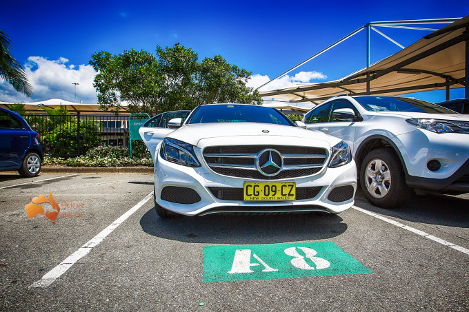 虽然后者原本选的是敞篷跑车,不过到的时候被告知车型没有了,只有布里斯班还有一辆存货,于是他示意帮我升级到Benz系列,我觉得也算个不错的选择~话说在澳洲开敞篷的确实没有加州一号公路那么流行。
