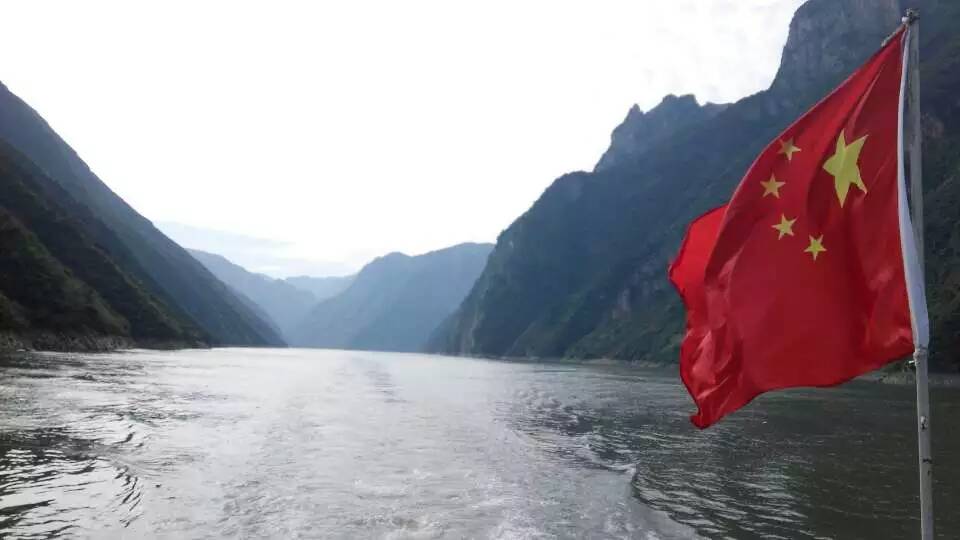 碧绿的江水,青翠连绵的群山,的确有“轻舟已过万重山”的意境。逢十一时节,看五星红旗飘扬在大好河山之间,“一条大河波浪宽,风吹稻花香两岸,我家就在岸上住,听惯了艄公的号子,看惯了船上的白帆,这是美丽的祖国,是我生长的地方。” 那种自豪感真是爆棚!