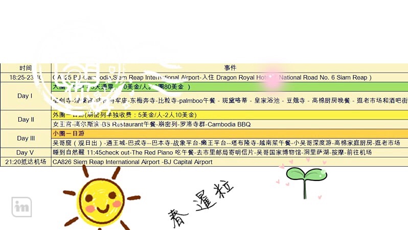 柬埔寨最佳出行时间是3月份,其他月份受气候影响会比较大~定下来出行月份肯定要提前看机酒。从Mafengwo上面的攻略来看,一般来说飞柬埔寨有两种飞法:直飞和转机。转机的价格会相对便宜,但是一般在途中候机时间较长,个人建议,如果大家有足够的假期,比如8-10天,选择转机会比较划算,在新加坡或者香港等地停留一下玩儿几天再飞来柬埔寨,机票价格在淡季可以控制在2600-3000元人民币以内。但是本次是带着妈妈玩儿,时间只有5天,我们两个都要上班T T,所以直接锁定北京直飞柬埔寨,国航官网价格:3776元/人,4晚的酒店,我一般选择酒店都是四星或者五星,如果经济允许,精品酒店是最好的,充满异域特色,会给旅行加分不少(主要是为了卫生,外加东南亚酒店评级标准而言,四星相当于国内三星,),柬埔寨四星酒店的价格基本上都是在225-900元之间不等,也就是4晚的酒店至少要900元-3000元。柬埔寨的特色是寺庙,宗教,历史和文化,并非度假胜地,个人觉得性价比不是特别高,所以选择了来来会的机酒组合4099元/人(包含往返机票和4晚4星级酒店住宿)。