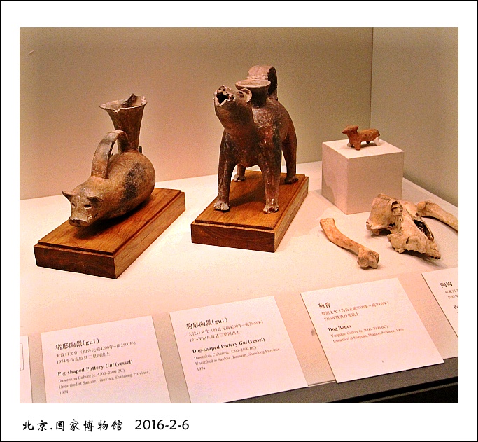 在这个展厅,除了陶猪、陶狗,我们看到陶鬶、陶豆、陶鬲、陶盆、陶鼎、陶罐、陶壶、陶灶以及捻线用的陶纺轮等物品。