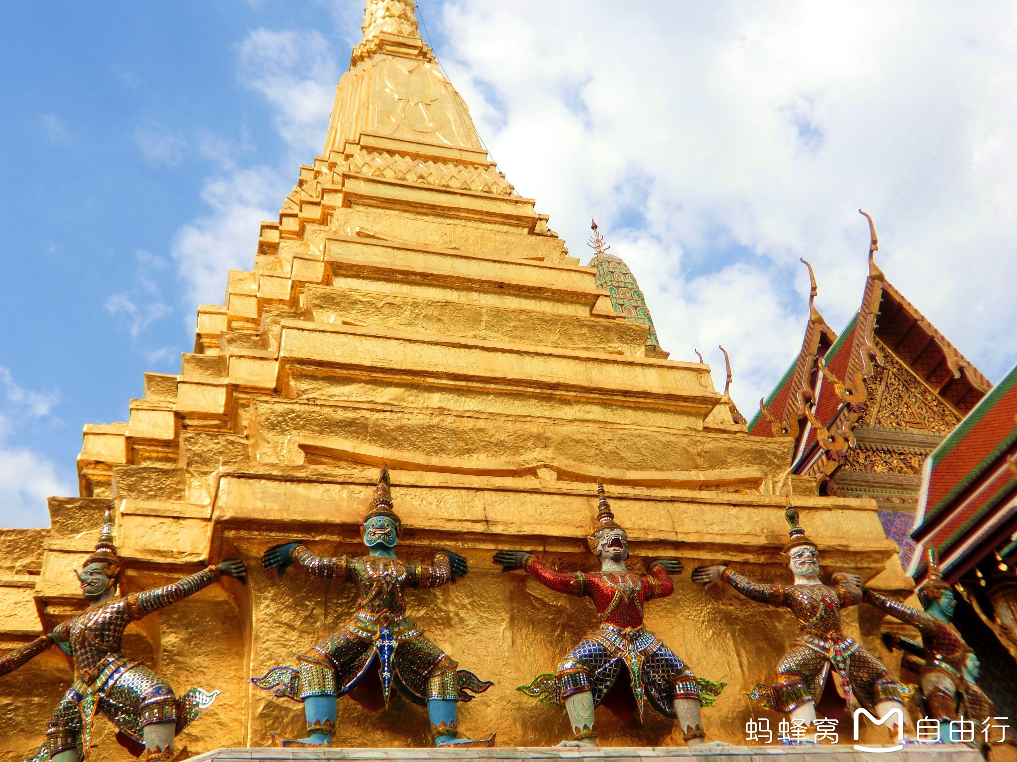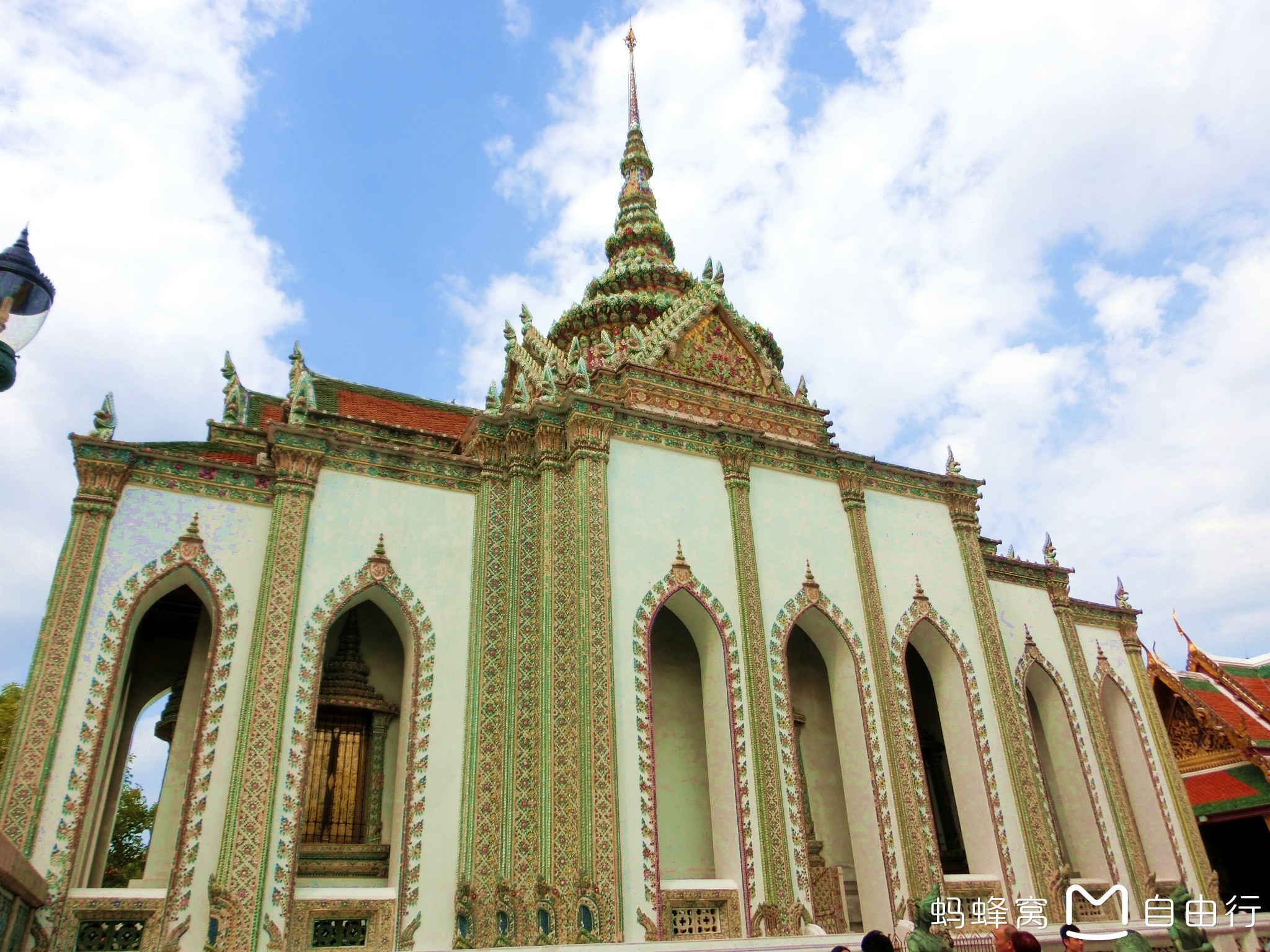 炎热的心情,却因为意外省了200而感到格外高兴!到处都写着Happy Chinese New Year!原来泰国的节日气氛不亚于我们国家呢。跟着人流挤进门,牢牢拉住老公生怕自己走丢了!大皇宫,就是泰国皇室贵族居住的地方,只不过大皇宫很大,开放一部分供游客参观,还有一部分是未开发的,因为泰国的国王住在里面。不可以被打扰。