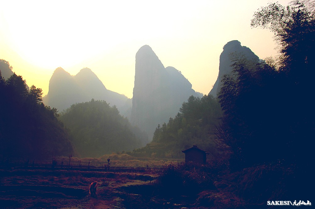 一大早,我们便来到了山脚下,大山的空气总是那么的清新,老屋,乡间田埂。远处望去,山峰林立,褚峰叠翠,形态各异,自然给了我一种难以抗拒的神秘诱惑感。