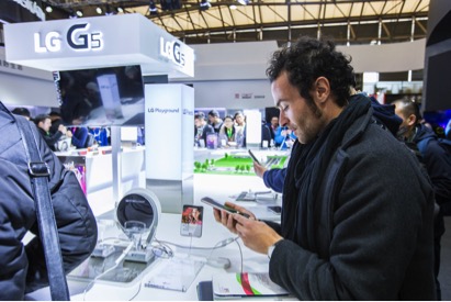 进入LG的展厅内部,本次展会最大的亮点,当然莫过于还未在国内发布的LG G5模块手机的展台了。所谓的模块手机,其实也是LG这次推出的一个全新的手机概念,就是通过手机的各种升级配件,能够到达各种功能的极致体验,让手机不仅仅是一款手机,通过各种模块的搭配,让手机具有更强大的功能,更是一种全新的生活体验。