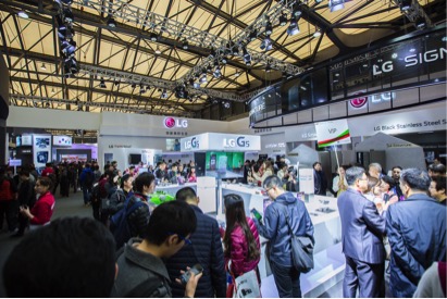 进入AWE展会现场,来到W3的LG展台,只能用人气火爆来形容。LG展台的设计也充分结合了LG产品的特点。