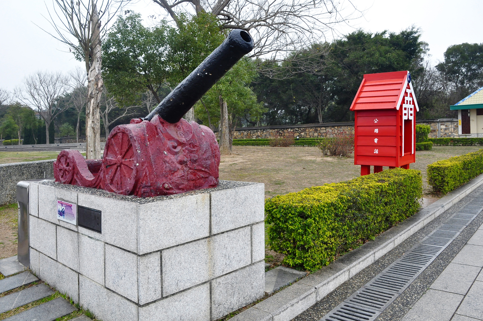 莒光楼前的火炮模型雕塑与“金门”公用电话亭也是独具风格~