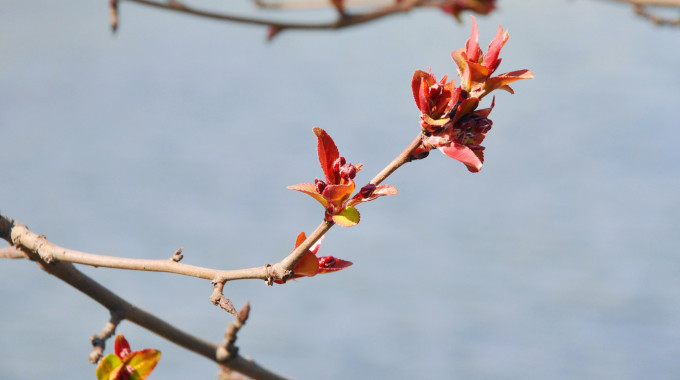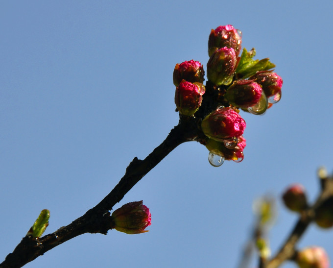 嫩嫩的枝叶可见深红的花蕾,好期待它的绽放呀!