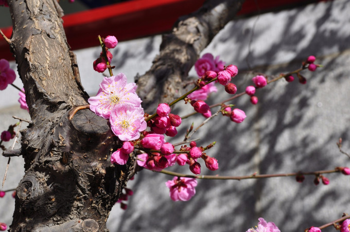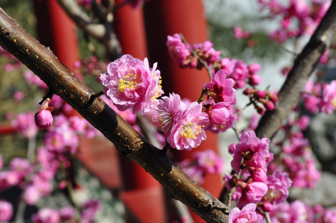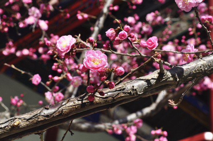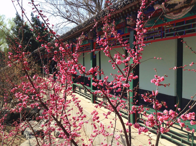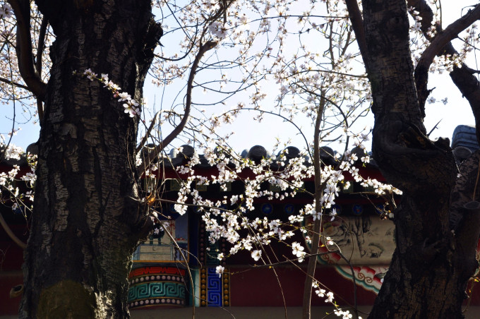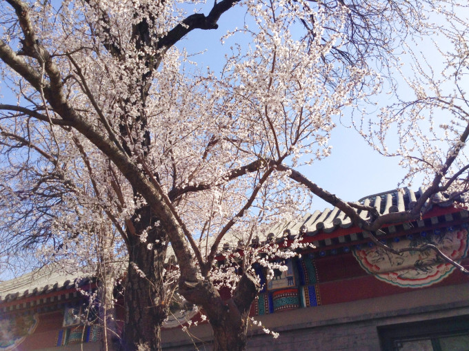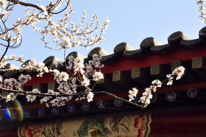 山桃花也会选择在这雕梁画栋之前怒放,吸引无数游人为它喝彩、拍照。