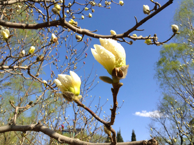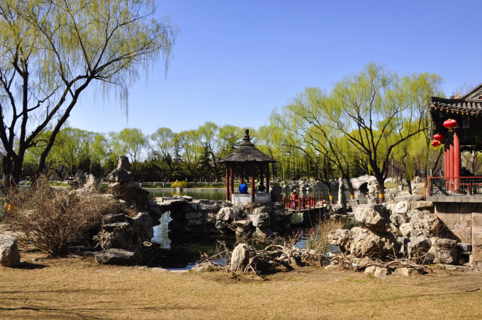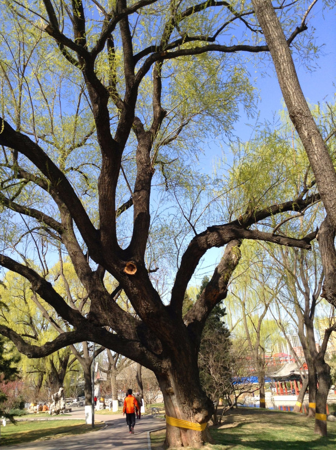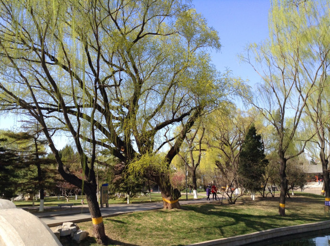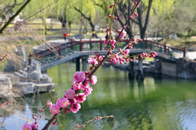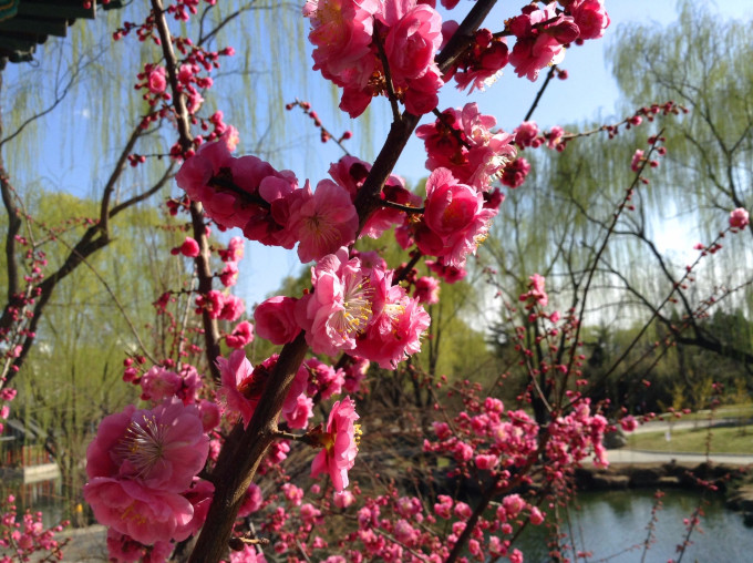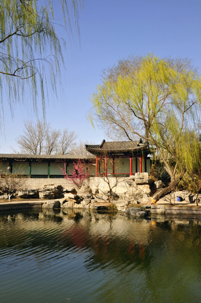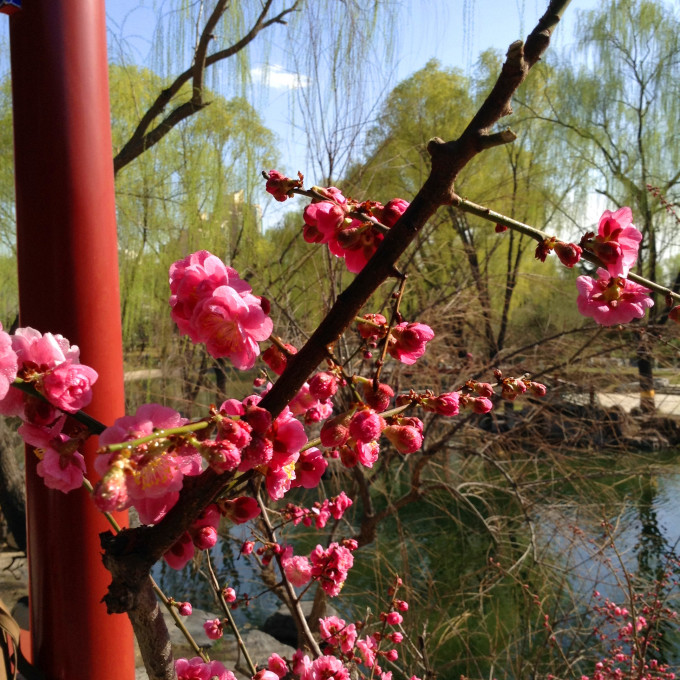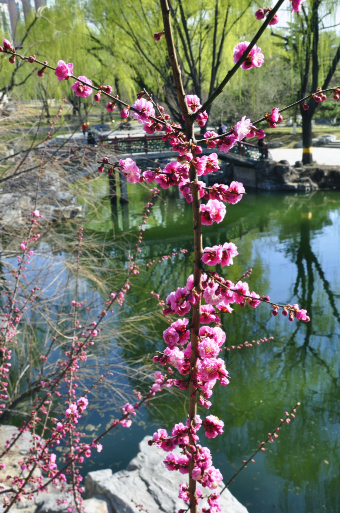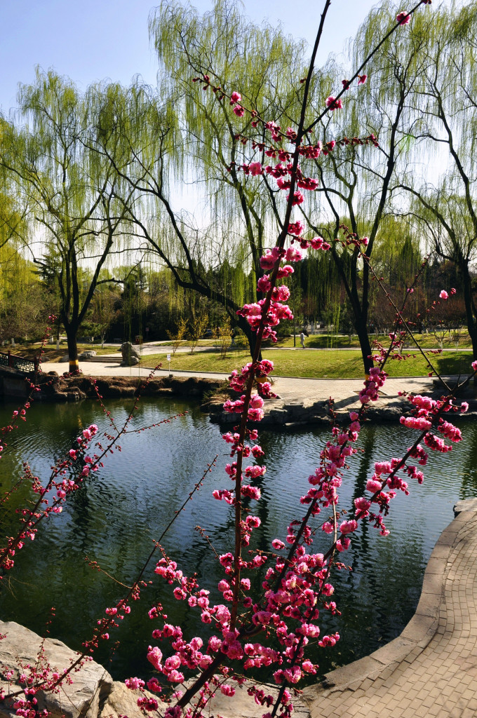 春天已来临大地复苏,龙潭公园内,垂柳嫩绿、山桃怒放、玉兰含苞待放、榆叶梅刚刚吐出花蕾。湖水暖暖鹅鸭泛波,飞鸟吱吱环绕花丛。我们下午来到了位于北京二环城东南的龙潭公园,沿碧湖绿柳畔,在蓝天白云下,尽享着满园的初春感受。