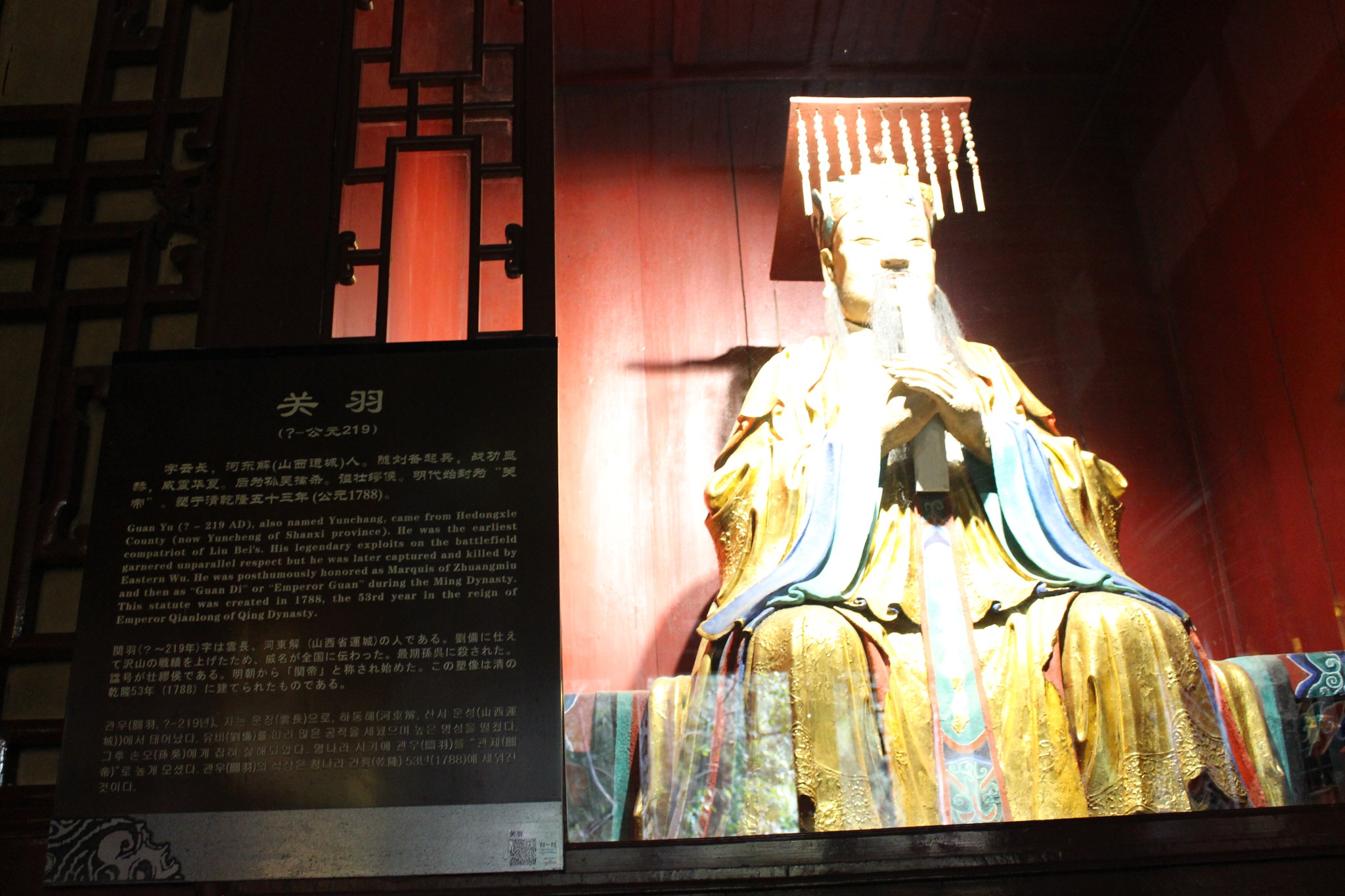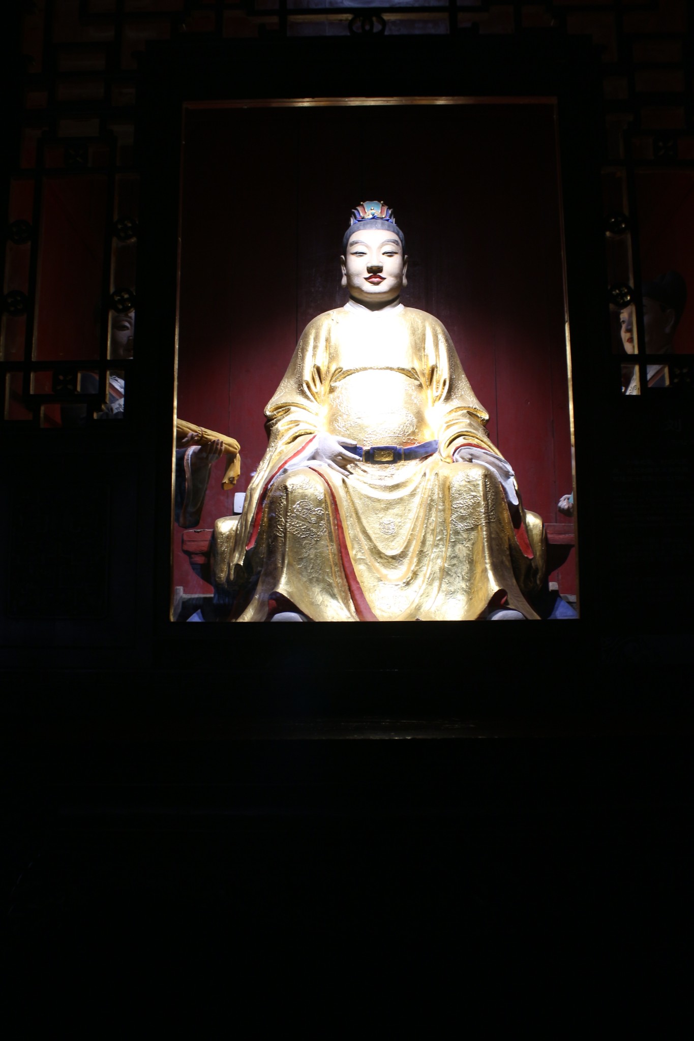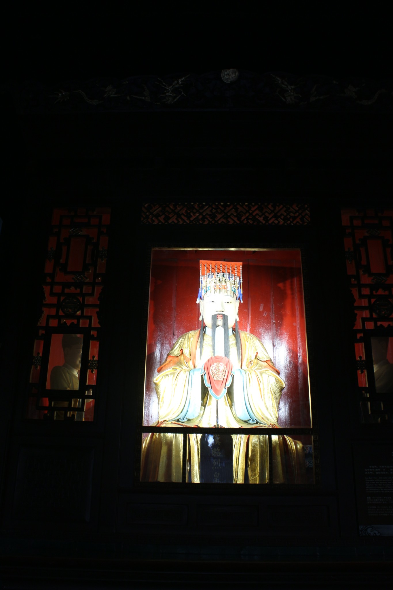 二门内是刘备殿。殿的正中供奉着刘备的贴金泥塑坐像。
