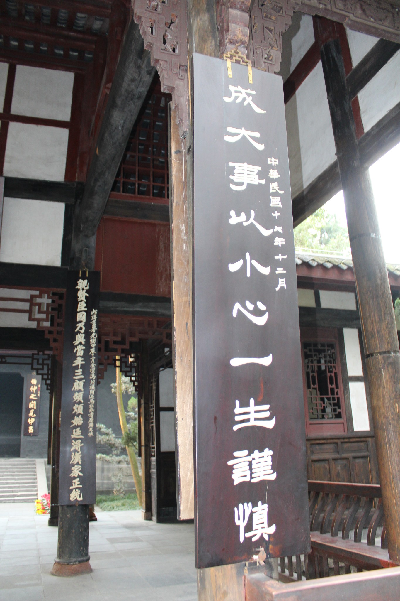 出刘备殿,低一个台阶,就是过厅。过厅悬挂着董必武、冯玉祥、徐悲鸿等人撰书的匾额对联。