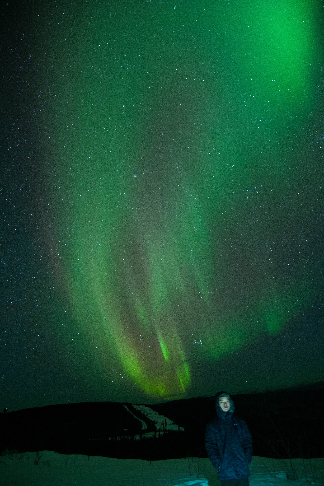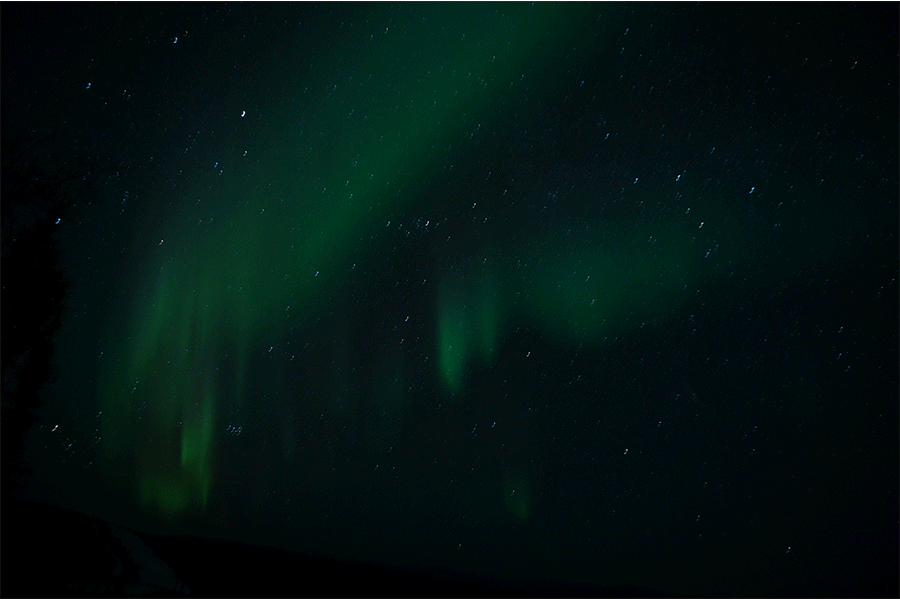温泉的极光小屋门口拍的,弱弱的极光只持续了几十分钟