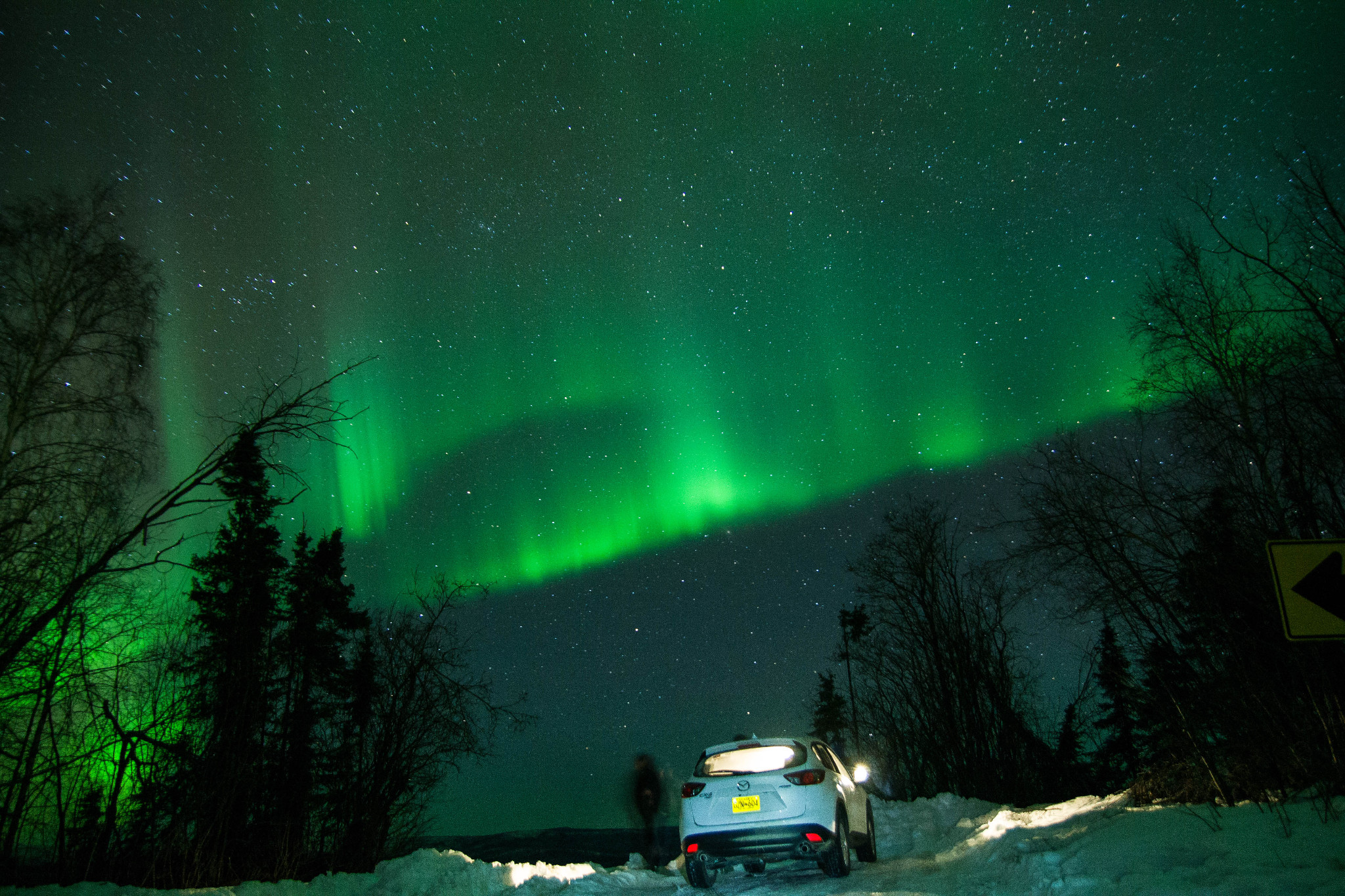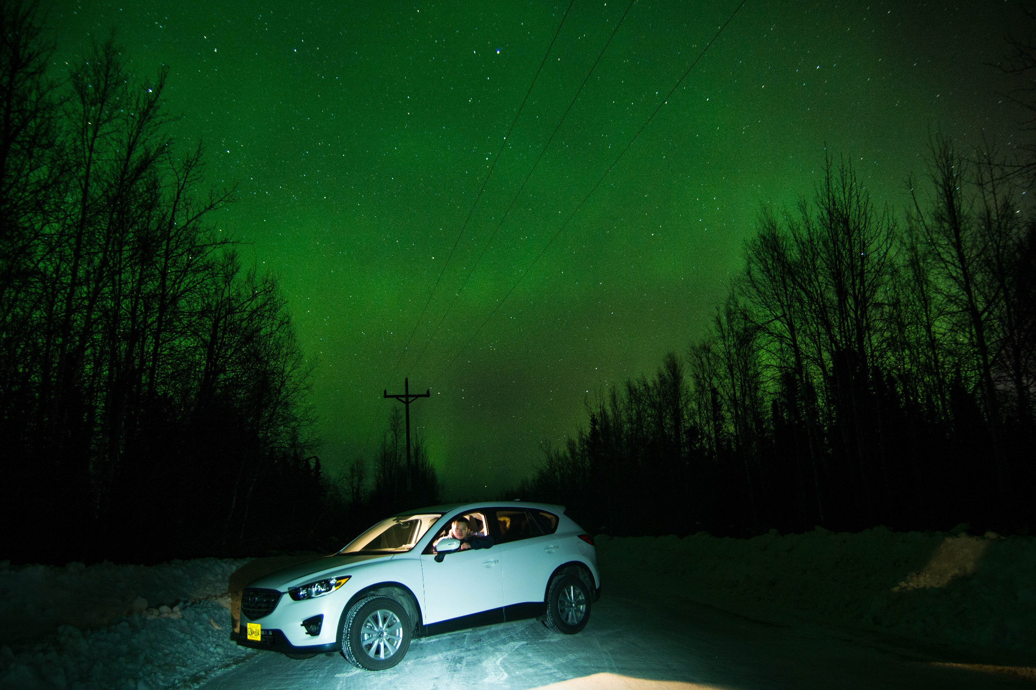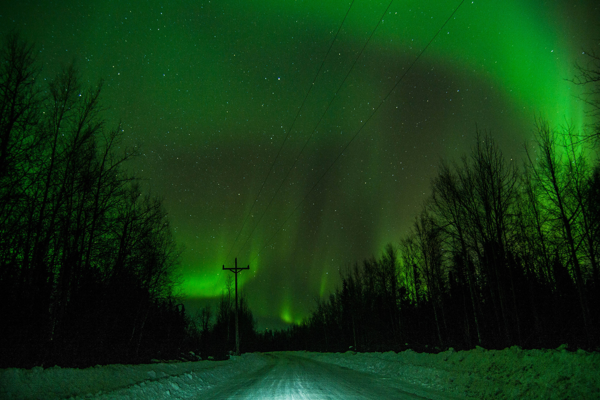 我们在 Fairbanks 附近看极光的地点。离城市越远越好!