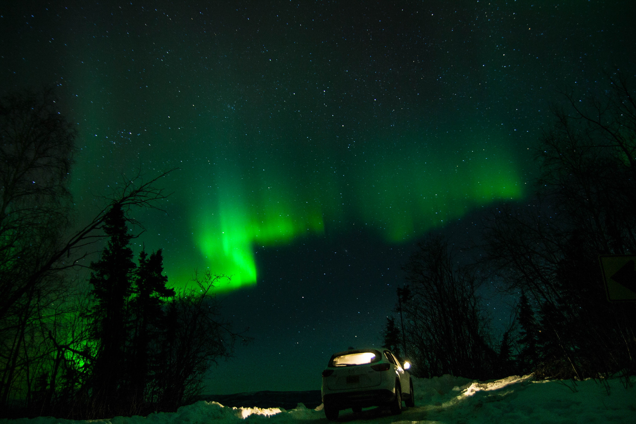 关于摄影装备,我也没太专业的建议,毕竟我也是新手,为了来阿拉斯加才提前一个月买的相机。要拍极光,手机肯定是不行的,相机也不必很贵,只要有Manual Mode可以长曝光就行了。三脚架是肯定要带的。相机电池也要多备几个,低温下很容易就没电了。我带着一个200刀的二手单反,一个20刀的三脚架,3块电池就上路了,也没有拍的多专业,但至少能拍出点东西了~
