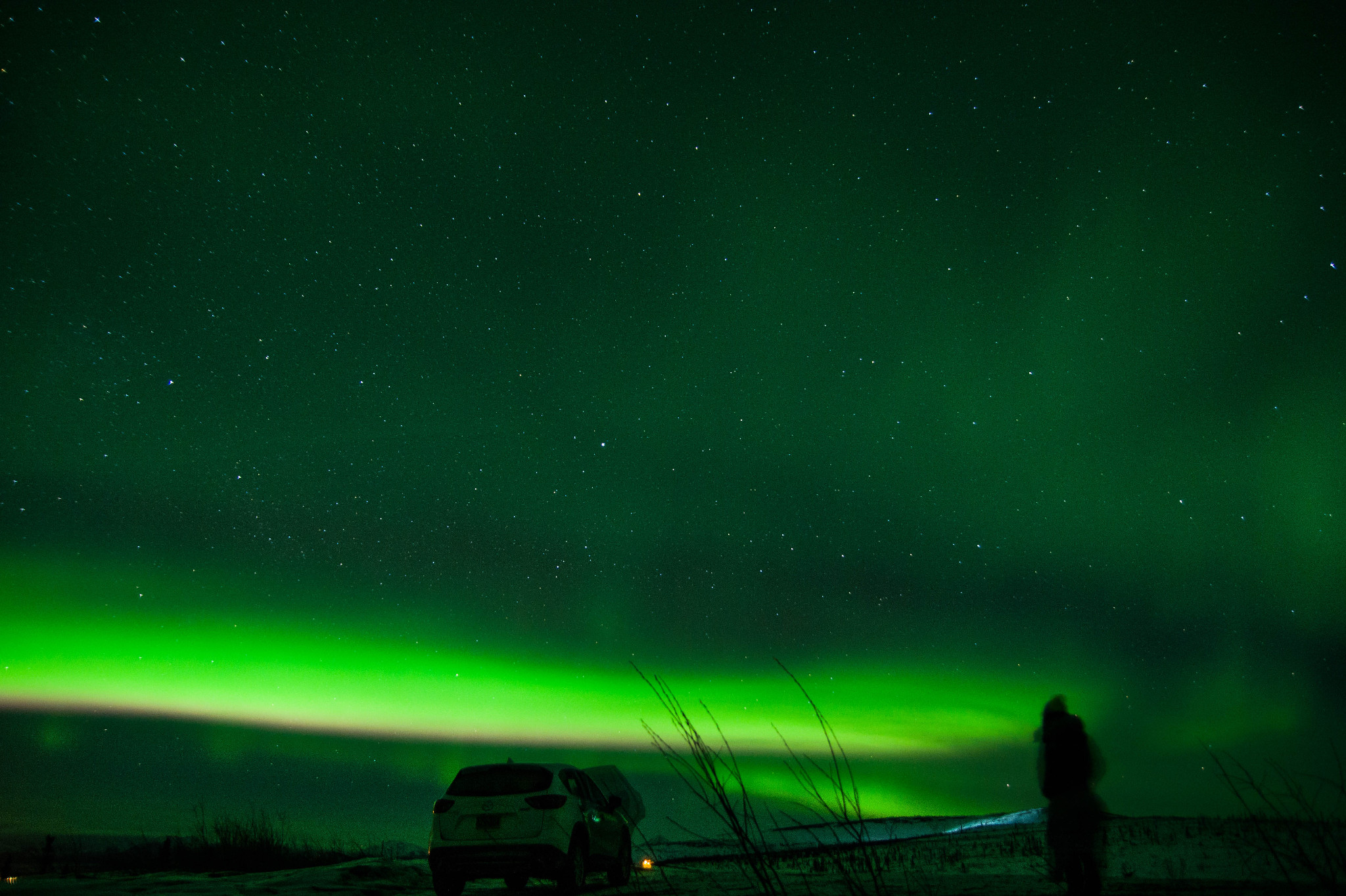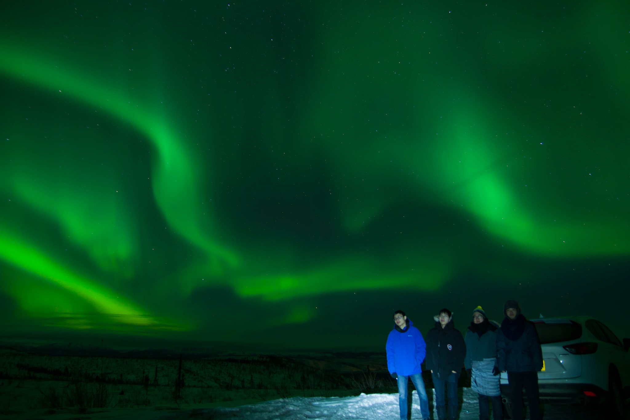 不过温泉提供75刀/人的观光车可以到山顶看极光,效果也许会好一点吧,但我们并没有去