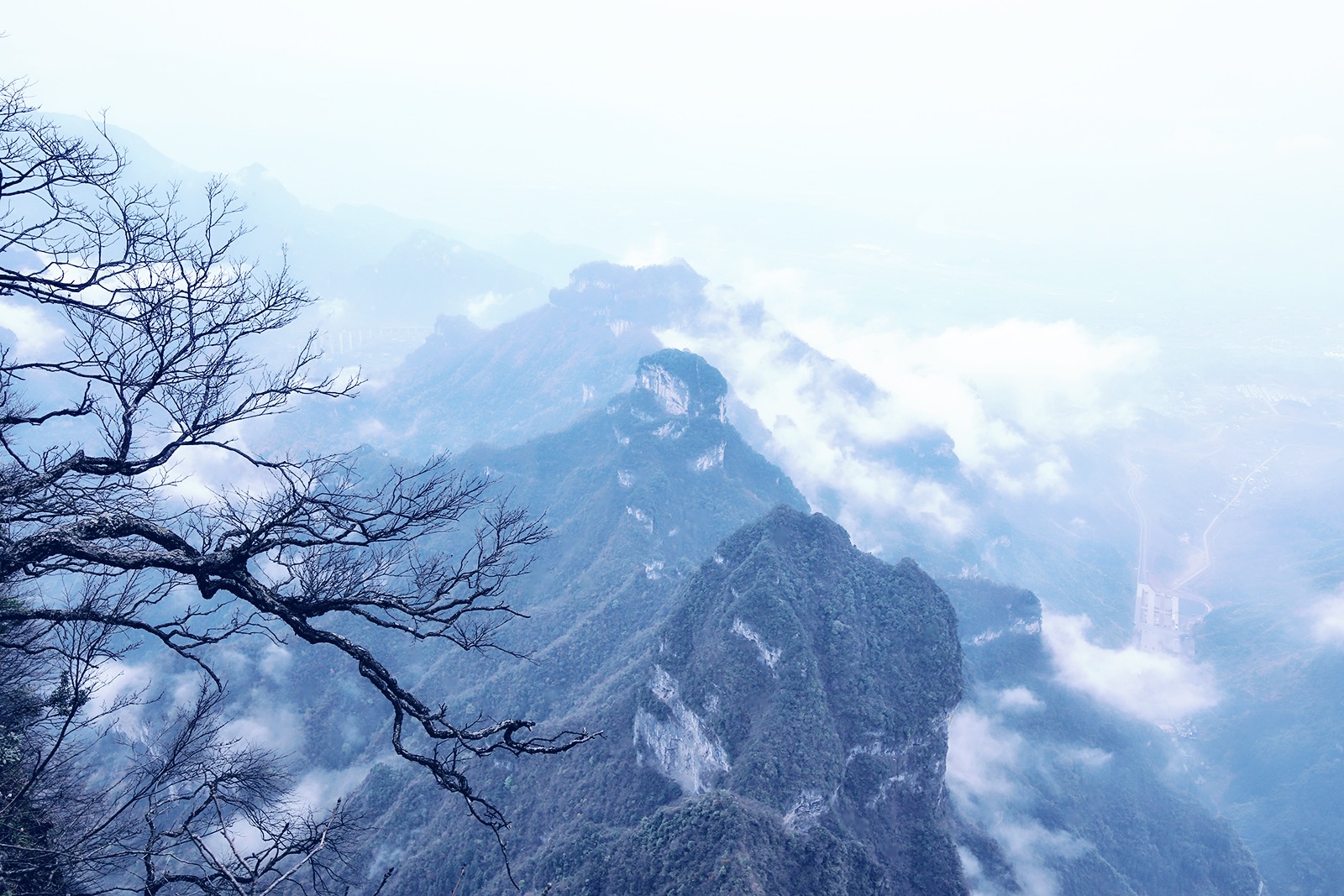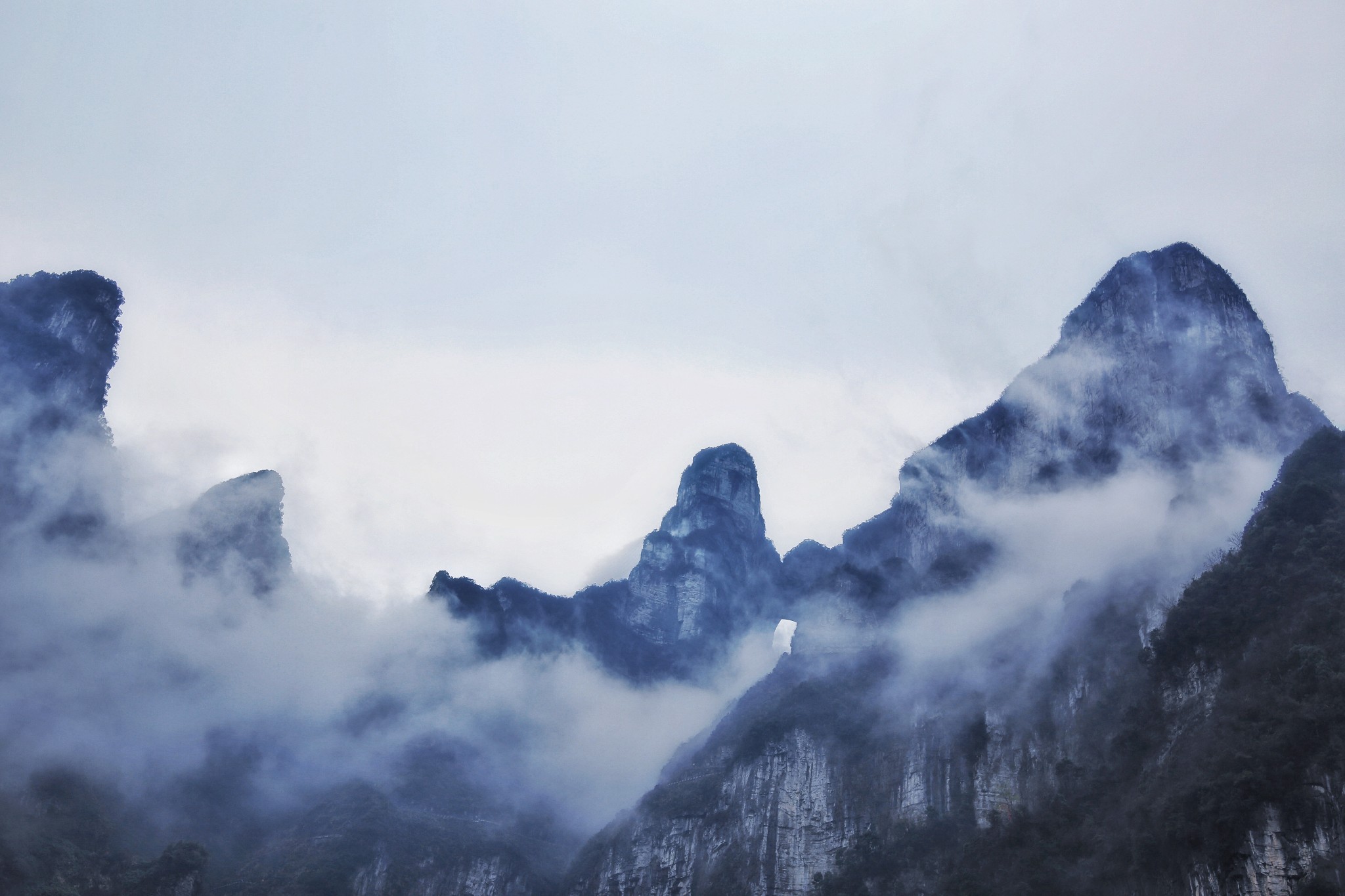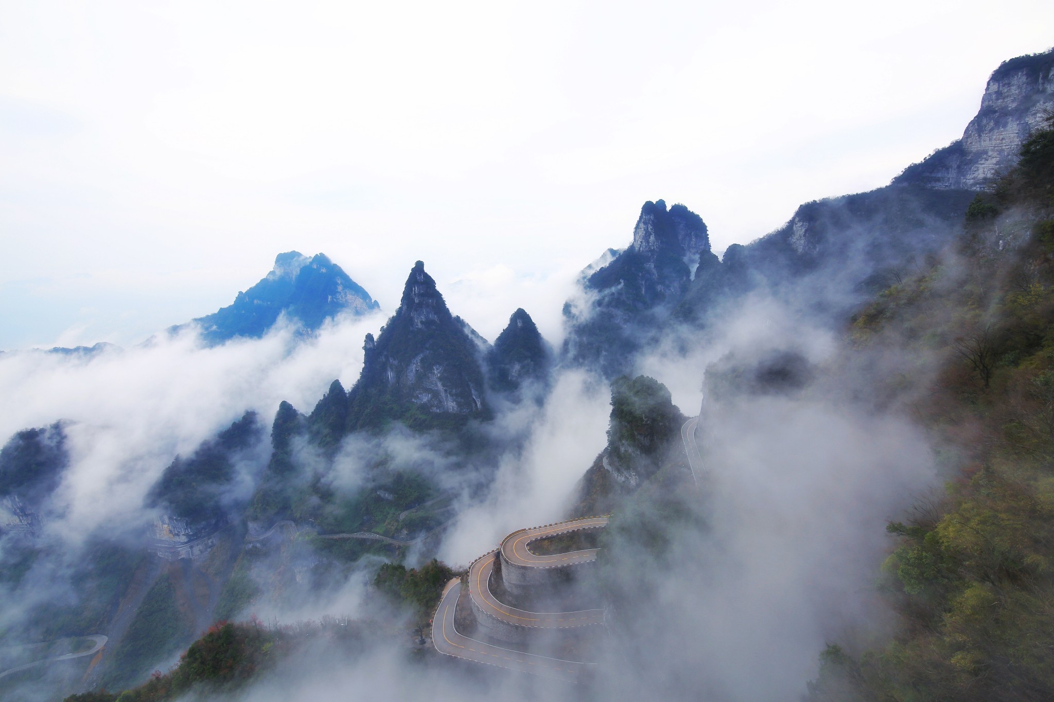 路过天门山,云雾一层层地环绕着天门洞飘荡,我们神仙一般快活。