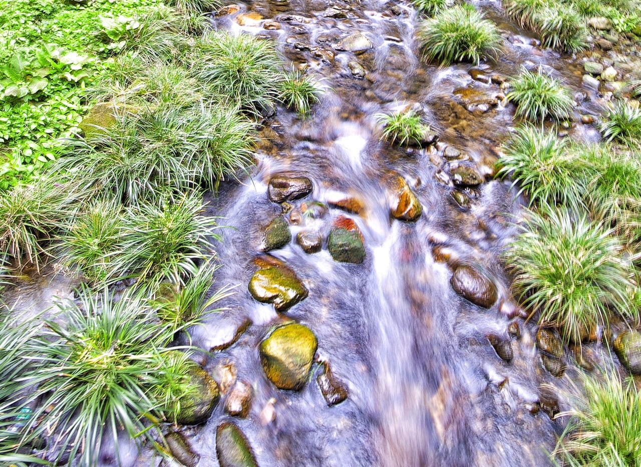 黄昏时分,我俩站在跳岩上,落日西斜,耳边是湍急的水声,一切似乎都刚刚好。