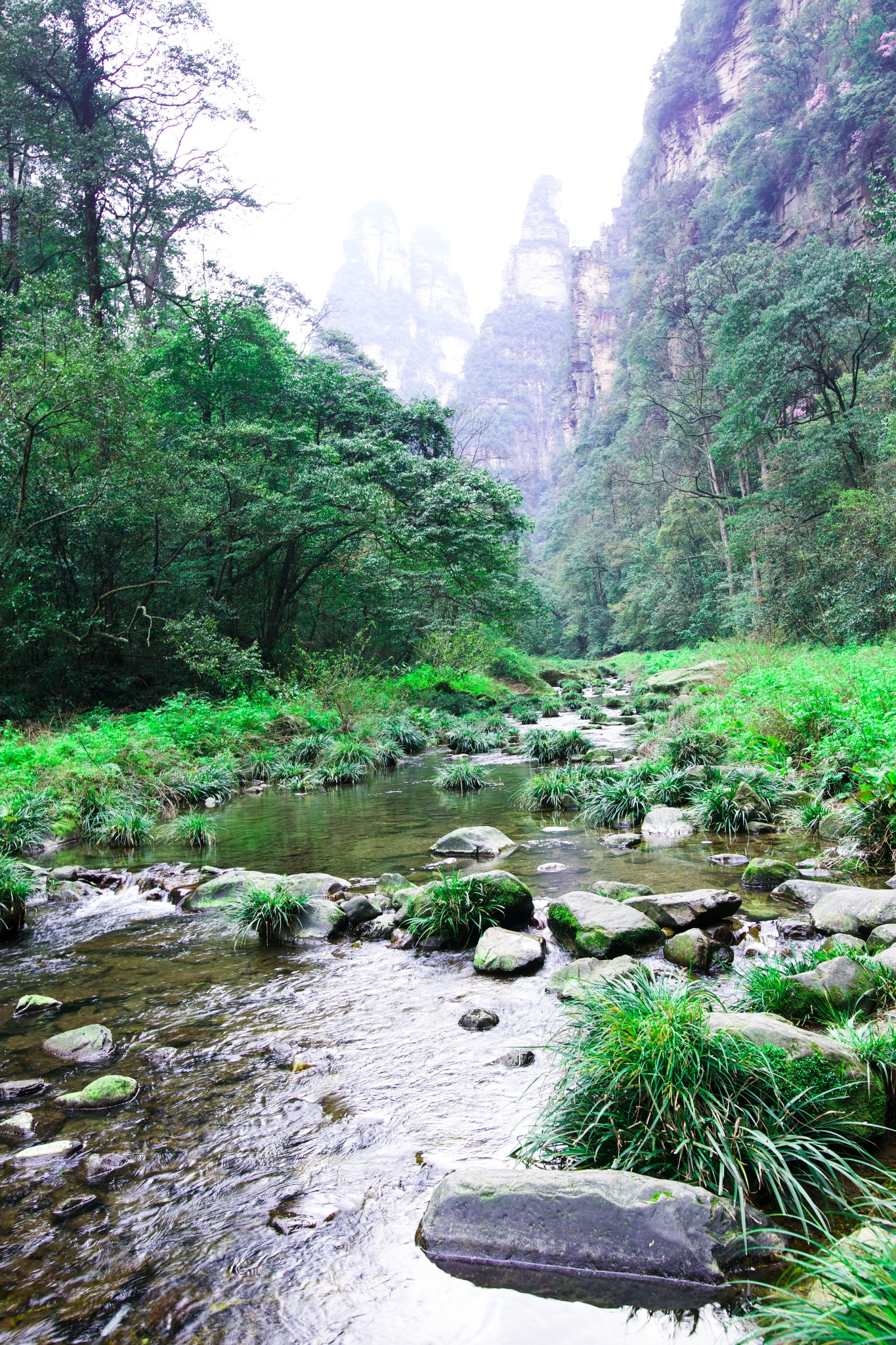 金鞭溪旁满是淌着光的新叶,空气湿漉漉的。