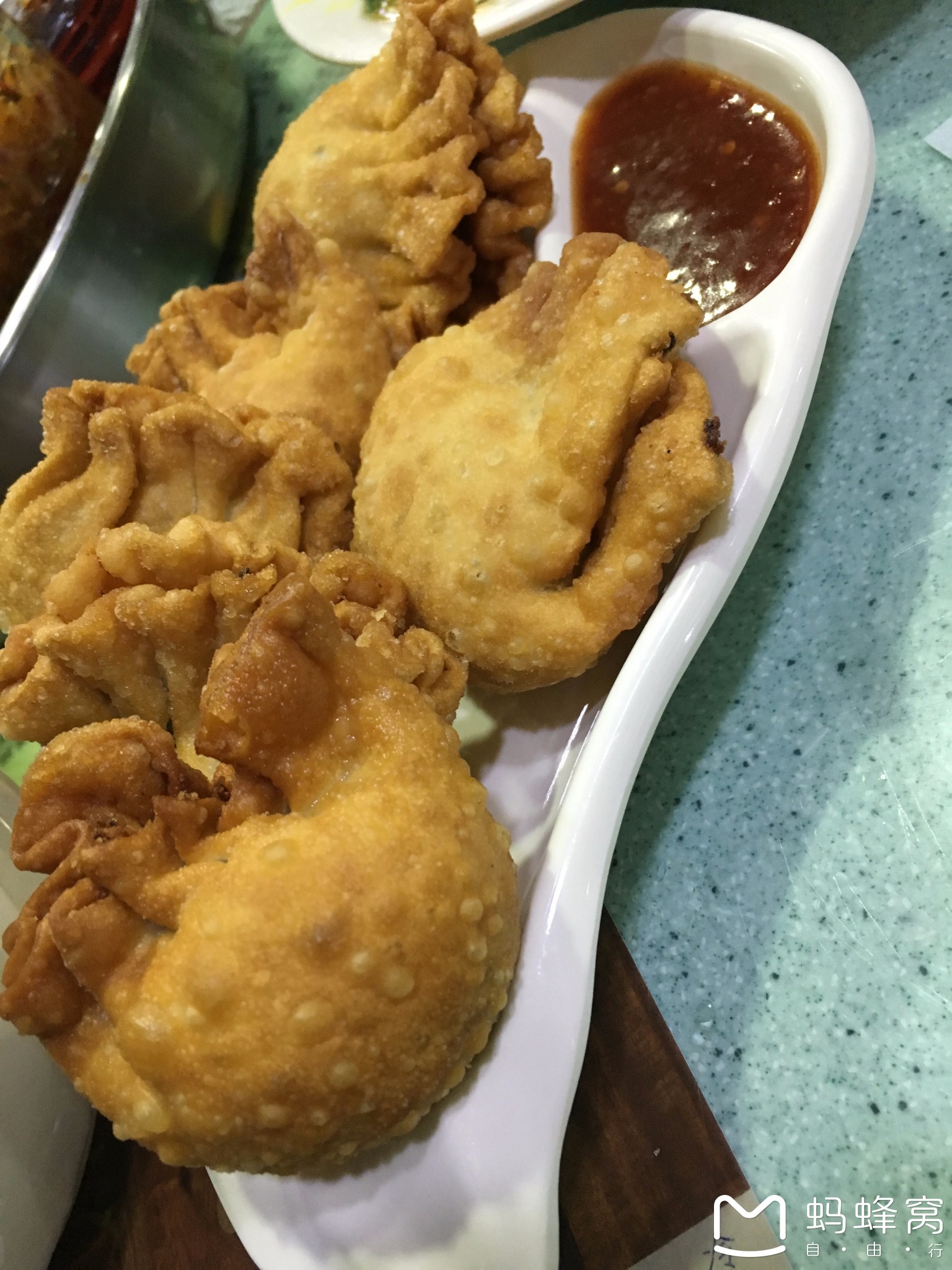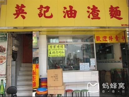 《英记油渣面》——————深水埗附近的美食,抵港后办理完入住便来这里吃,油渣面听起来油腻吃起来不然,面条有点像乌冬面,加上冬菜和辣椒很好吃。我们还要了炸饺子,蘸上甜甜辣辣的酱汁味道不错。