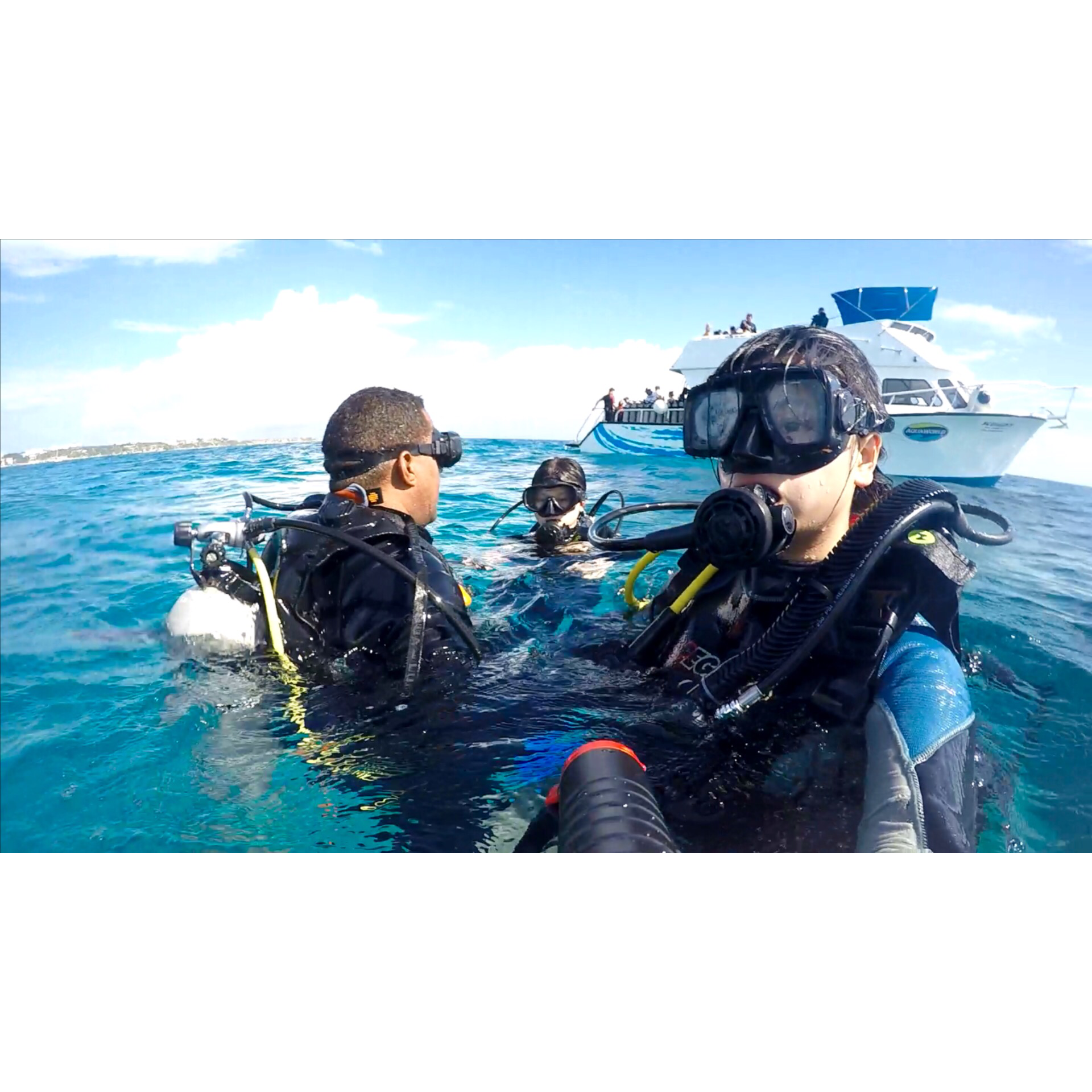 • 潜水坎昆的海看了就让人想拥抱 所以潜水很出名啦啦啦啦 好几种级别可以选择 训练时间和价钱也会因此而不同 我们是考了潜水证 298USD/人 其实和我想得有点出入 建议女孩子想试一试的 浮潜就好了 轻松好看