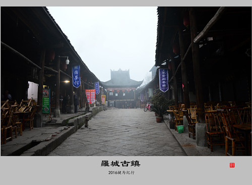 罗城古镇座落在一个椭圆形的山丘顶上,主街为船形结构,东西长209米,南北宽9.5米,