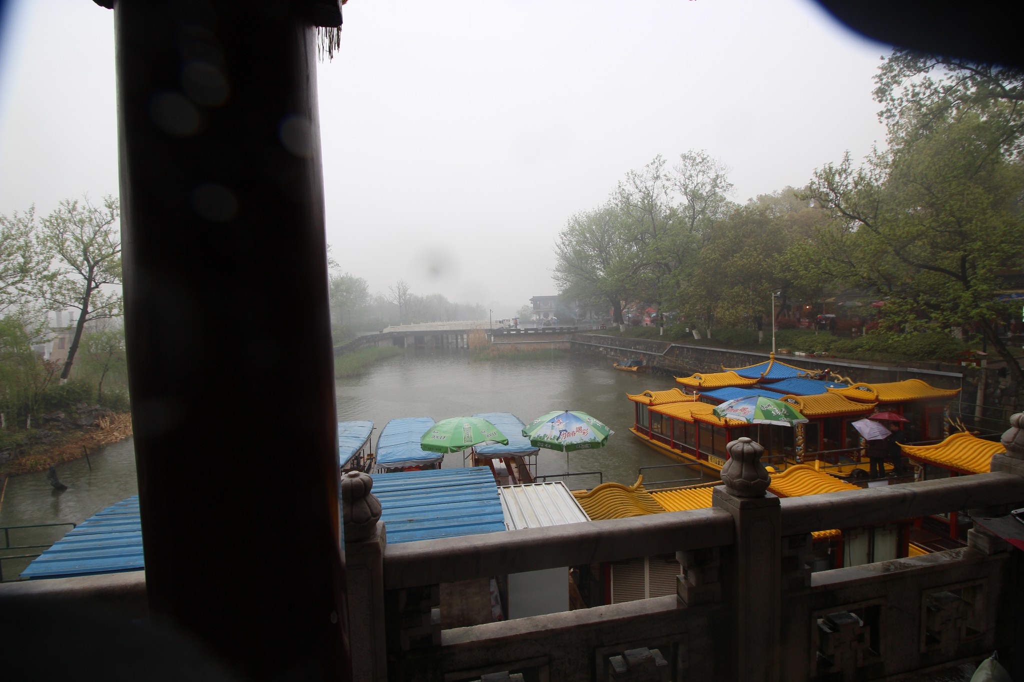 雨中游镇江,一手拿单反,一手举伞,我真感到手不够用,相机的遮光罩歪了,所以你们看到的这些照片边缘的黑块就是松了的遮光罩,拿着配广角镜头的相机,有时会觉得换一镜走天下的镜头比较好。我感觉手不够用,不能很好对焦和拿稳相机。