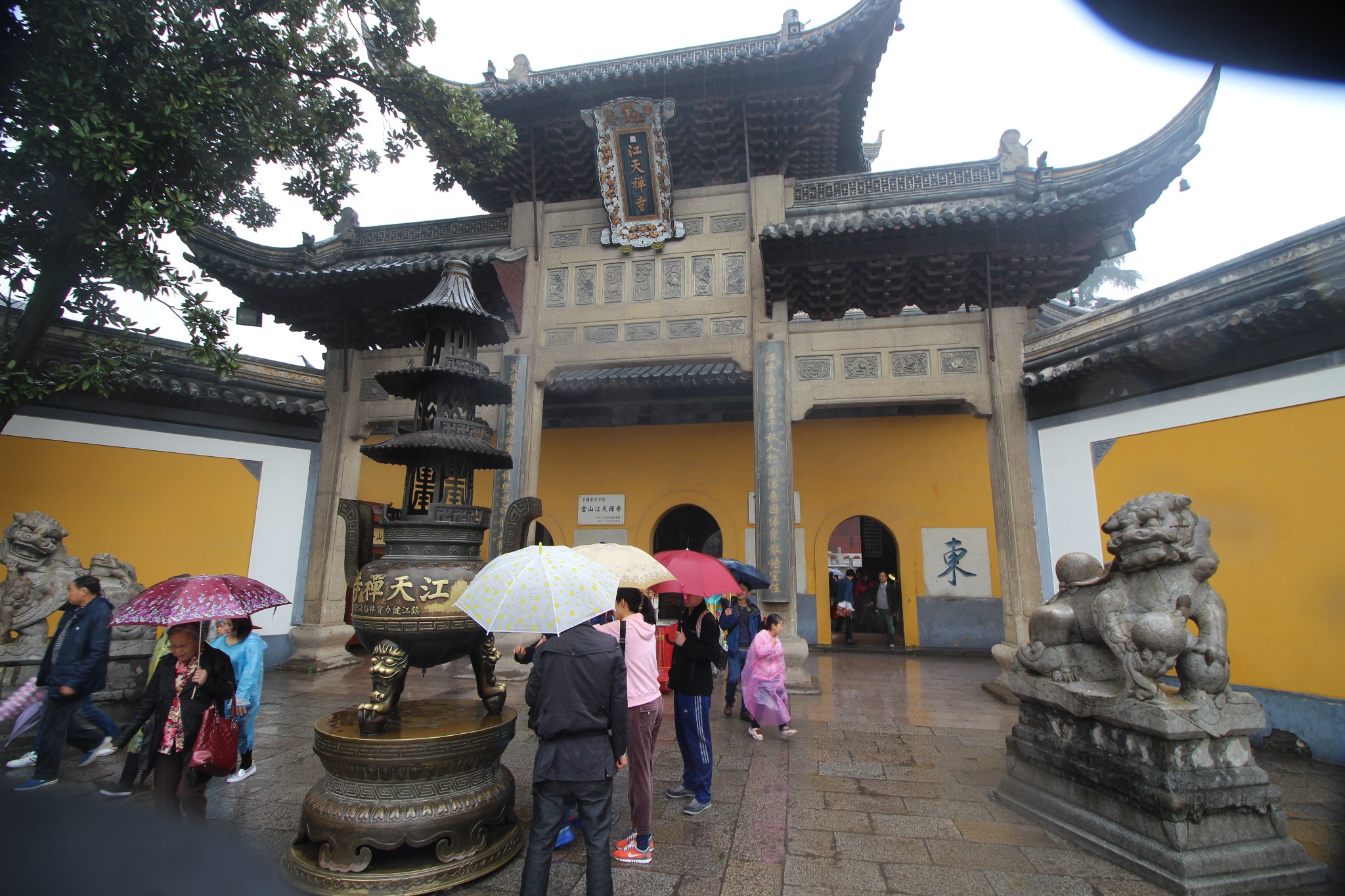 宴春楼金山店出来,向北走,过一条马路就是镇江最著名景区金山景区的大门。全票是65元。我买了优惠票32元。我本来想在门口叫一位导游,但是看到导游服务处挂的牌子上写着,1-10人讲解导游费100元,就没请。有社会上的导游在景区大门附近招揽生意,我感觉没什么保证,不敢请。事实证明我的决定是太对了,原因有二:1、镇江金山寺里到处是旅游团,可以免费蹭导游。2、我遇到的导游讲解都只是肤浅的皮毛,哪怕很好的景点讲解员在我这懂历史的人看来知识也不专业。