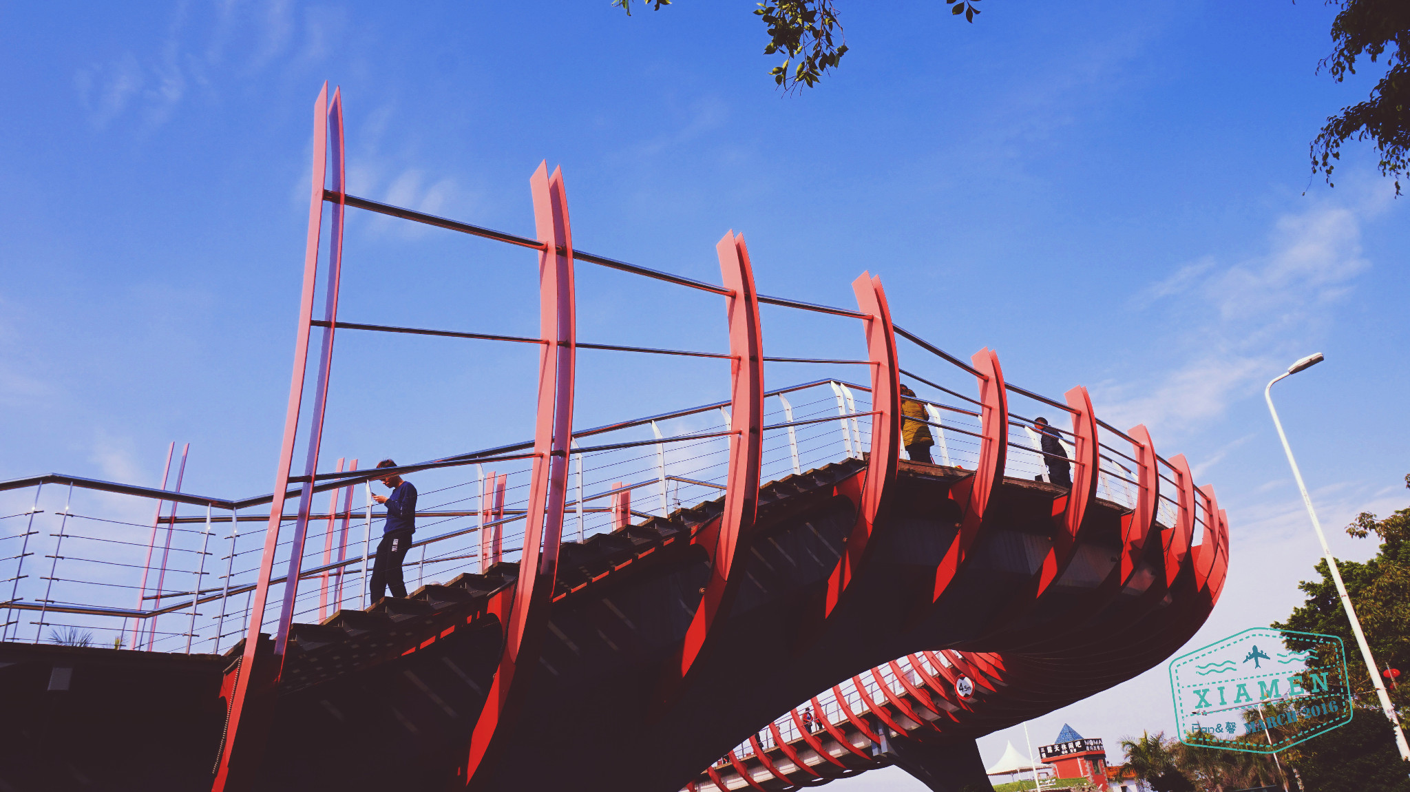我这次预订的是蚂蜂窝上推荐的蓝色小屋,就在曾厝垵公交站背后,去哪儿都特别方便,公交站旁边就是那座鱼骨头桥,直达海边沙滩。