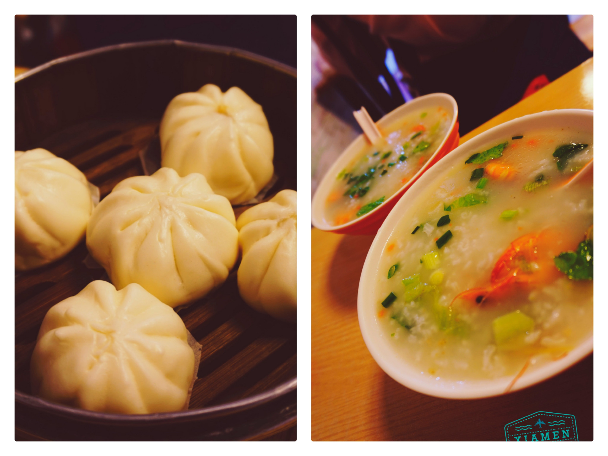 这边的小笼包不太好吃,早上吃的虾粥,居然还要自己剥虾,伤感。
