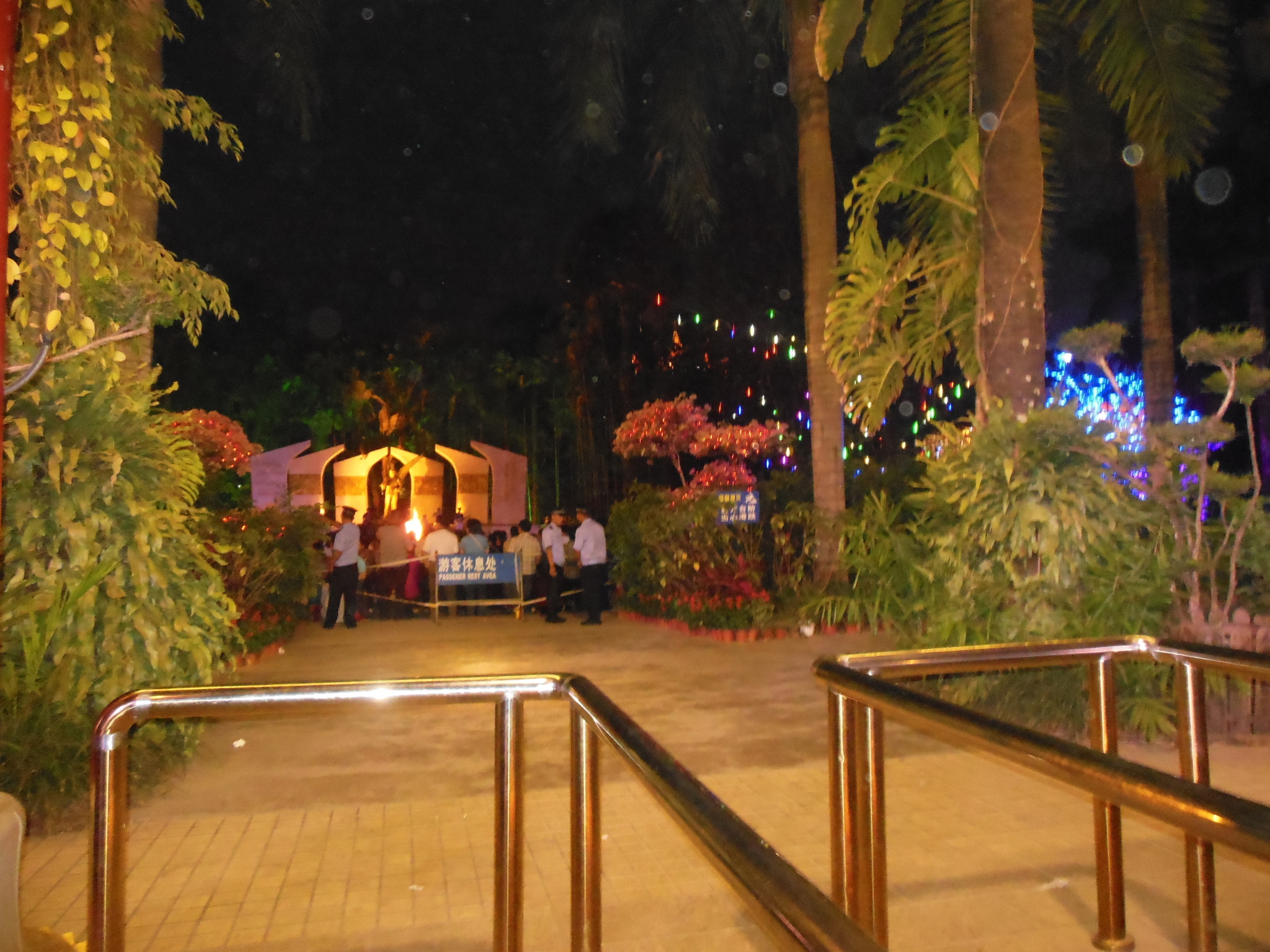 其实“亲家宾馆”4个字从3楼一直挂到1楼,只怪我们经过时没有看见。进入房间,里面整洁宽敞还有电视电脑,在走廊上就能看到曼听公园的大门,我们乐了。刚才所有的不愉快全都烟消云散。晚餐后走进曼听公园,里面成了停车场,无数旅游大巴停在那里,还看见远处的篝火晚会。。。。。。。回到住处,英英就迫不及待地给后方发微信传照片报告平安,那边知道了,我们的住处有无线网络连翘3个大拇指。